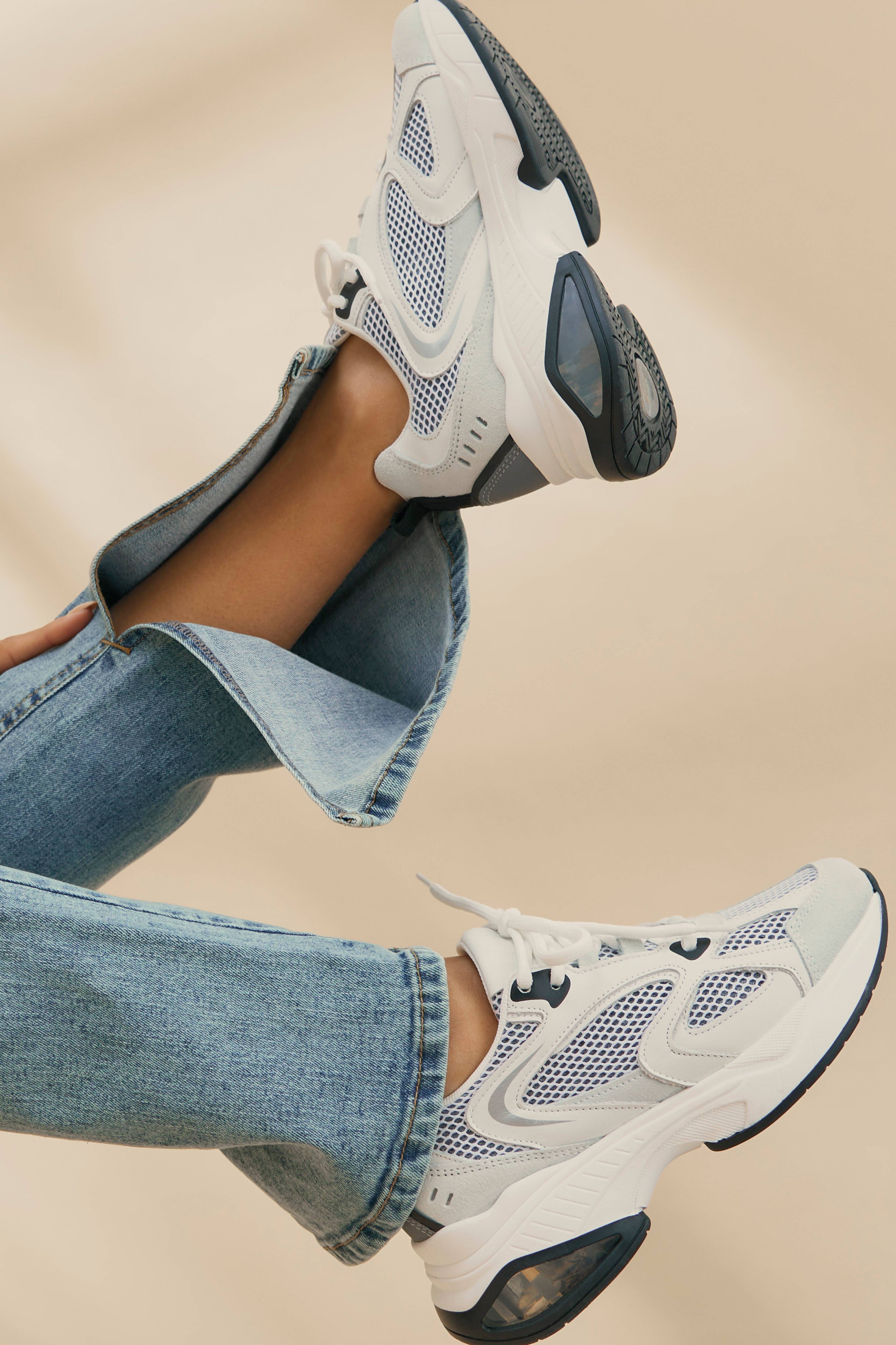 Sneakers i skind, ruskind og grovmønstret mesh. Sporty silhuet med grov, tyk sål med transparent parti ved hælen. Skindbetrukket, udtagelig indersål.