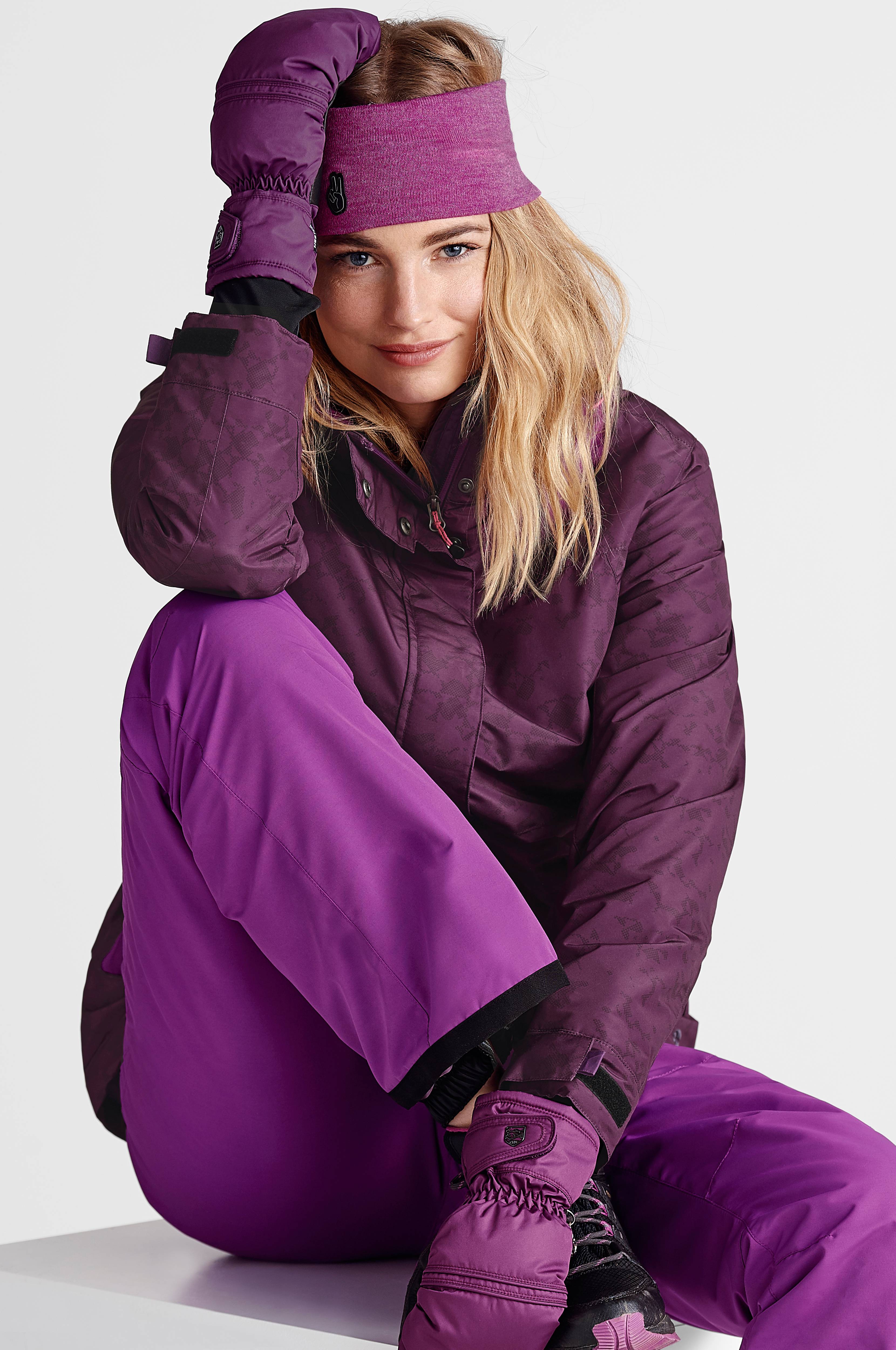 Vind- og vandafvisende skijakke med fine detaljer. Aftagelig hætte som fastgøres med lynlås og trykknapper. Elastisk løbegang med stop i forkant. Fleeceforet krave og hagebeskytter. Lynlås med beskyttende overfald som lukkes med trykknapper. Lomme til liftkort på venstre ærme som lukkes med velcro. Ærmekanten reguleres med velcro og har skjulte elastiske ribkanter i jersey med hul til tommelfingeren. To rummelige lommer med lynlås og en inderlomme i mesh. Indvendig snelås i taljen. Elastisk løbegang med stop forneden. Quiltet for. Længde ca. 72 cm i str. 38.