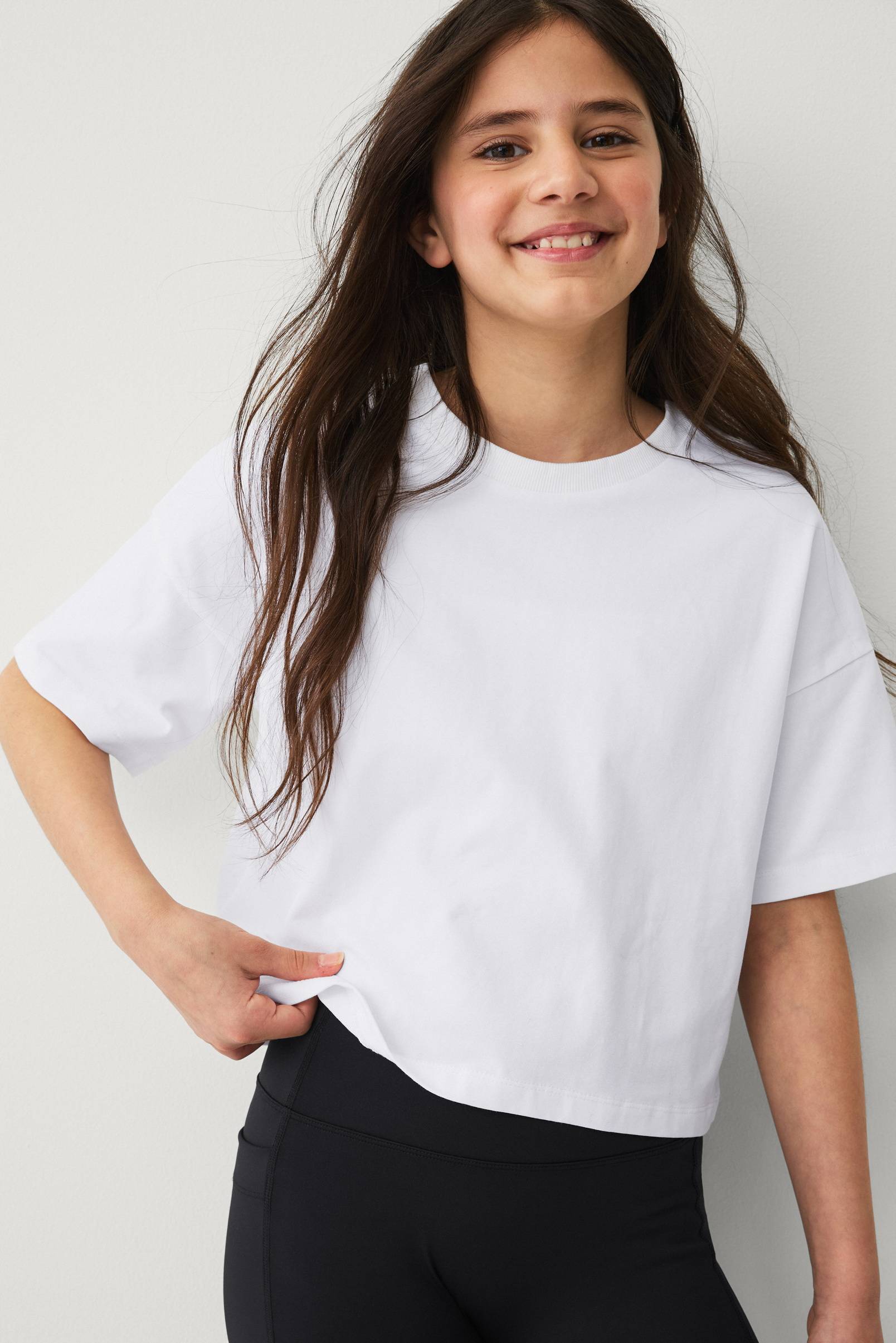 • Croppet t-shirt med afslappet pasform• Rund, ribbet halsudskæring
