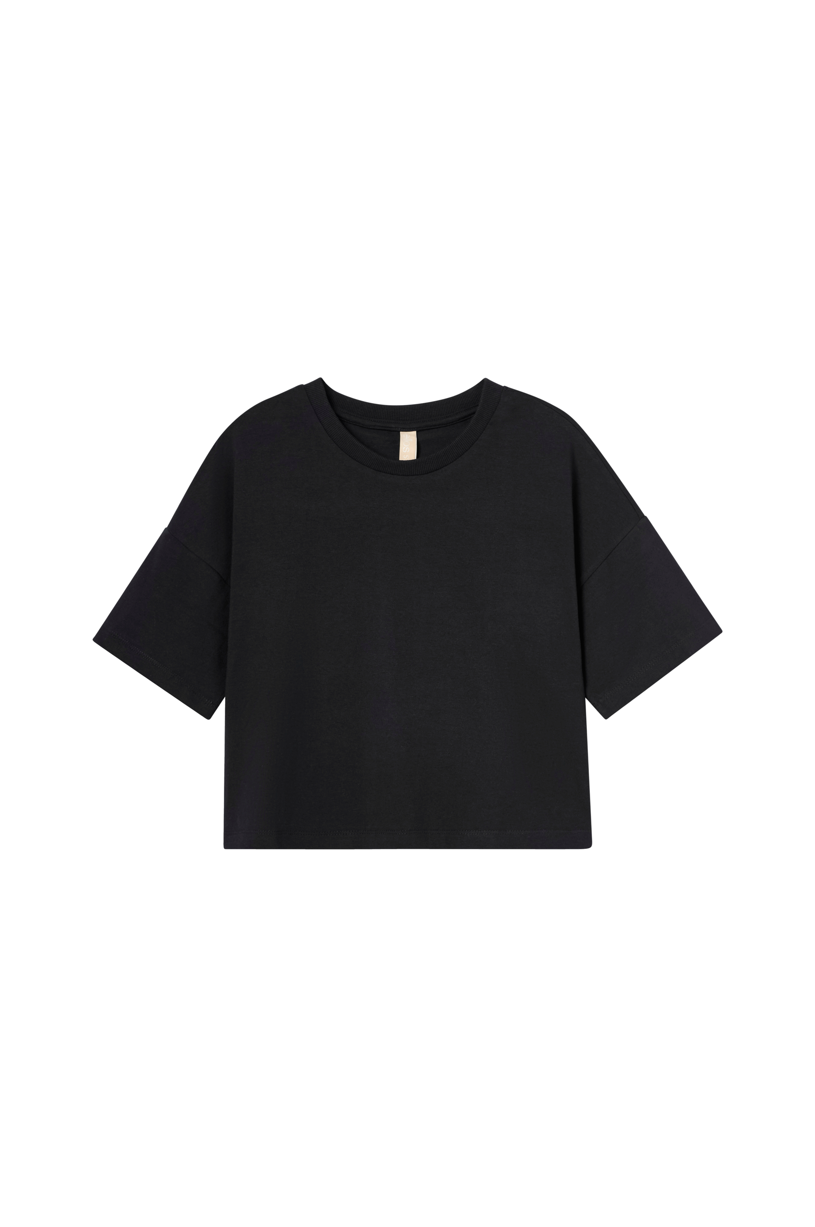 • Croppet t-shirt med afslappet pasform• Rund, ribbet halsudskæring