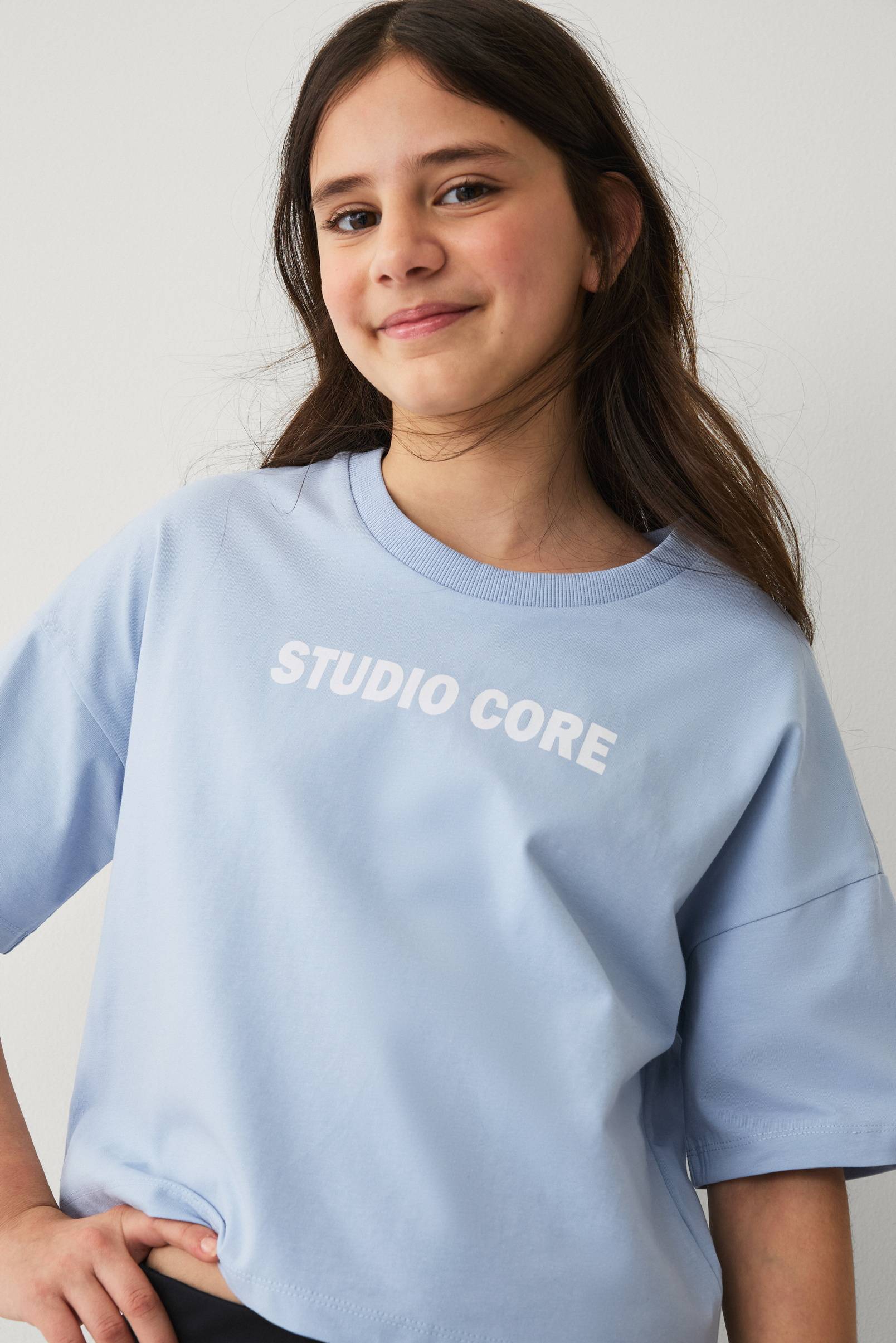 • Croppet t-shirt med afslappet pasform• Rund, ribbet halsudskæring