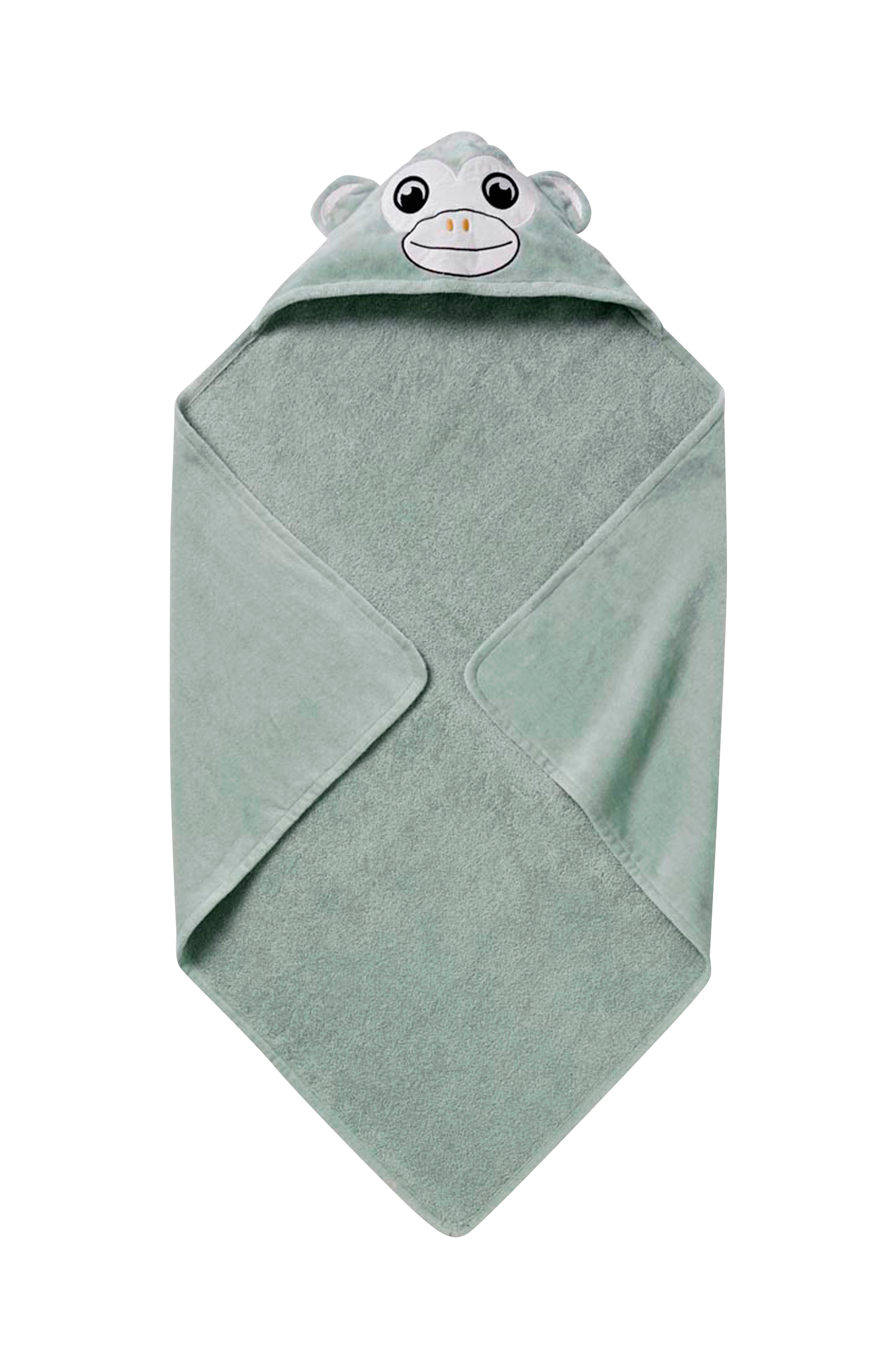 Firkantet design med hætte som har søde applikationer. Af højabsorberende frotté på indersiden og blød og tyk velour på ydersiden.