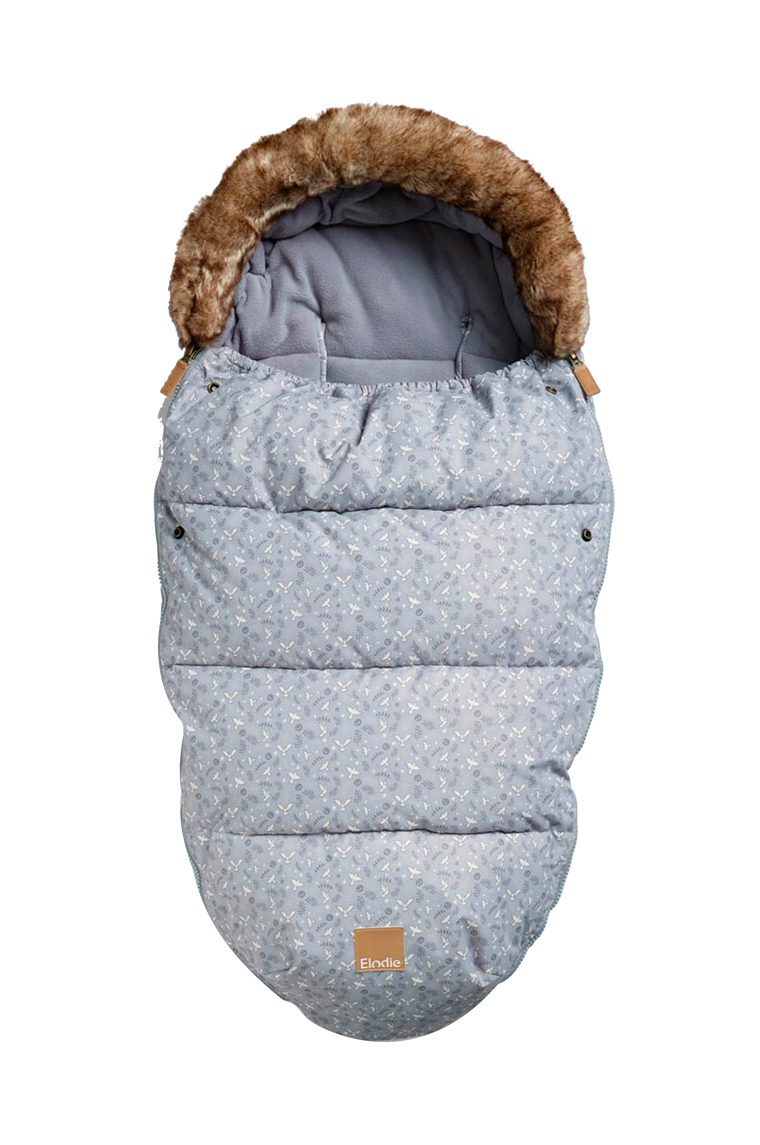 Kørepose med smarte funktioner - vandafvisende yderstof, tilpassede huller til barnevognsselen og en lomme på bagsiden som du trækker ned over vognens ryg for at forhindre, at køreposen glider ned.