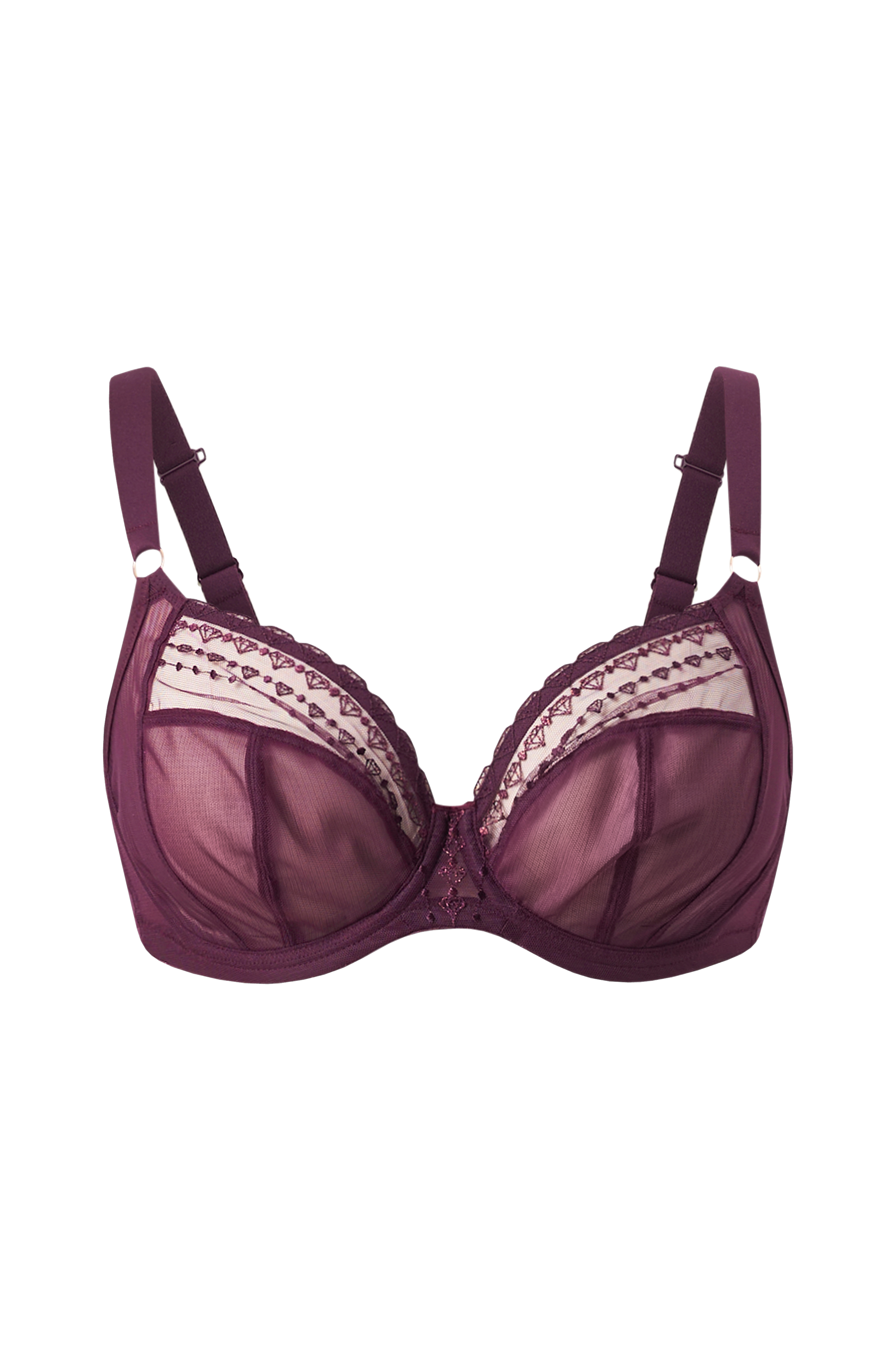 Bøjle-bh Matilda UW Plunge Bra fra Elomi. Fin model i mesh med broderier foroven. Brede, regulerbare skulderstropper, der kan knappes sammen på ryggen.