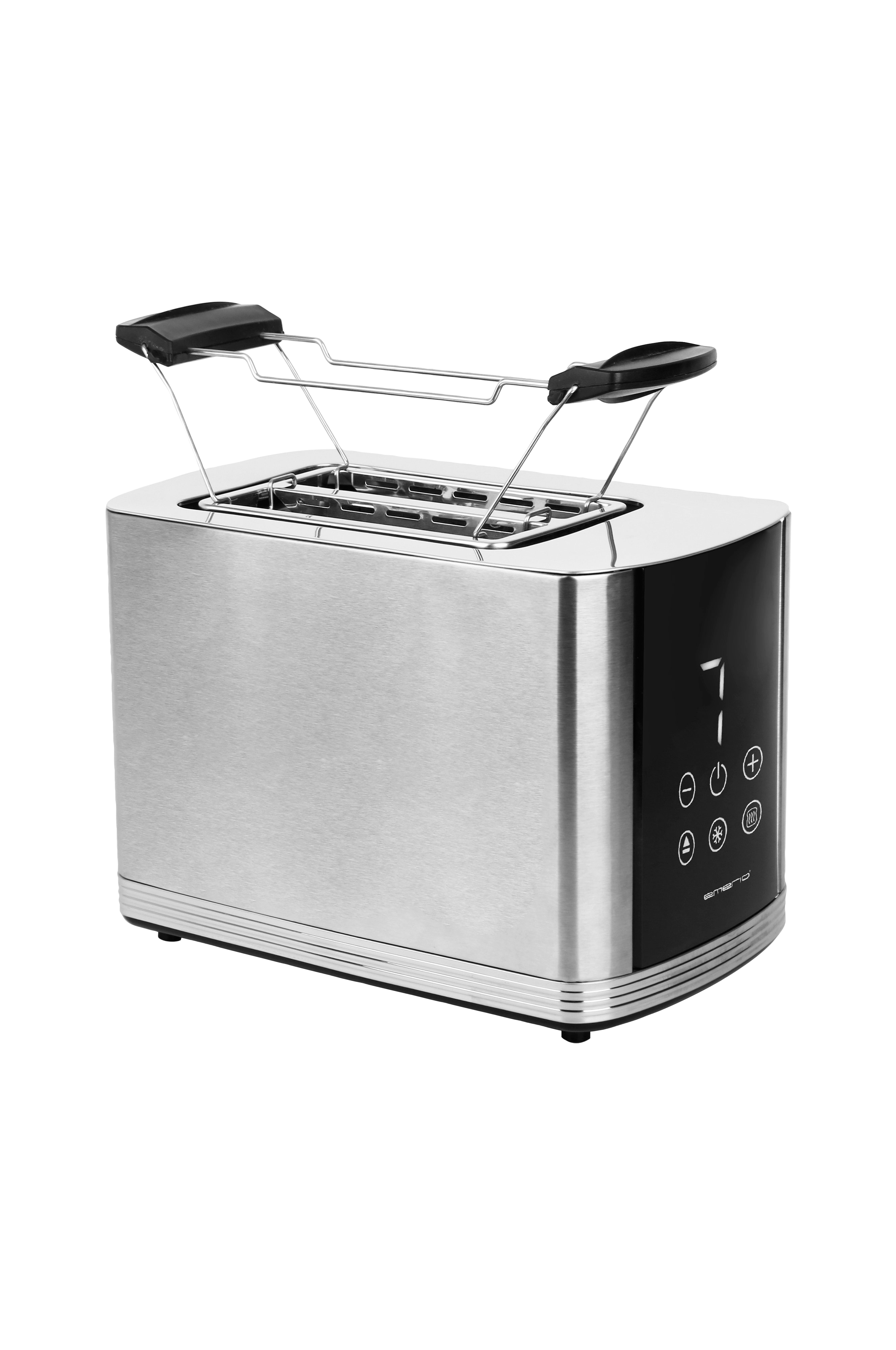 Brødristeren er flot designet i rustfrit stål og sort og har mange ekstra funktioner. Funktioner som automatisk centrering og optønings- og opvarmningsfunktion gør denne brødrister til noget helt særligt. Derudover har brødristeren et digitalt display, automatisk pop-up, stopknap og en krummeopsamler, der kan trækkes ud, så den er nem at rengøre. De praktiske gummifødder på undersiden stabiliserer brødristerens position. Med bollevarmerholderen kan du nemt optø og varme dit brød.