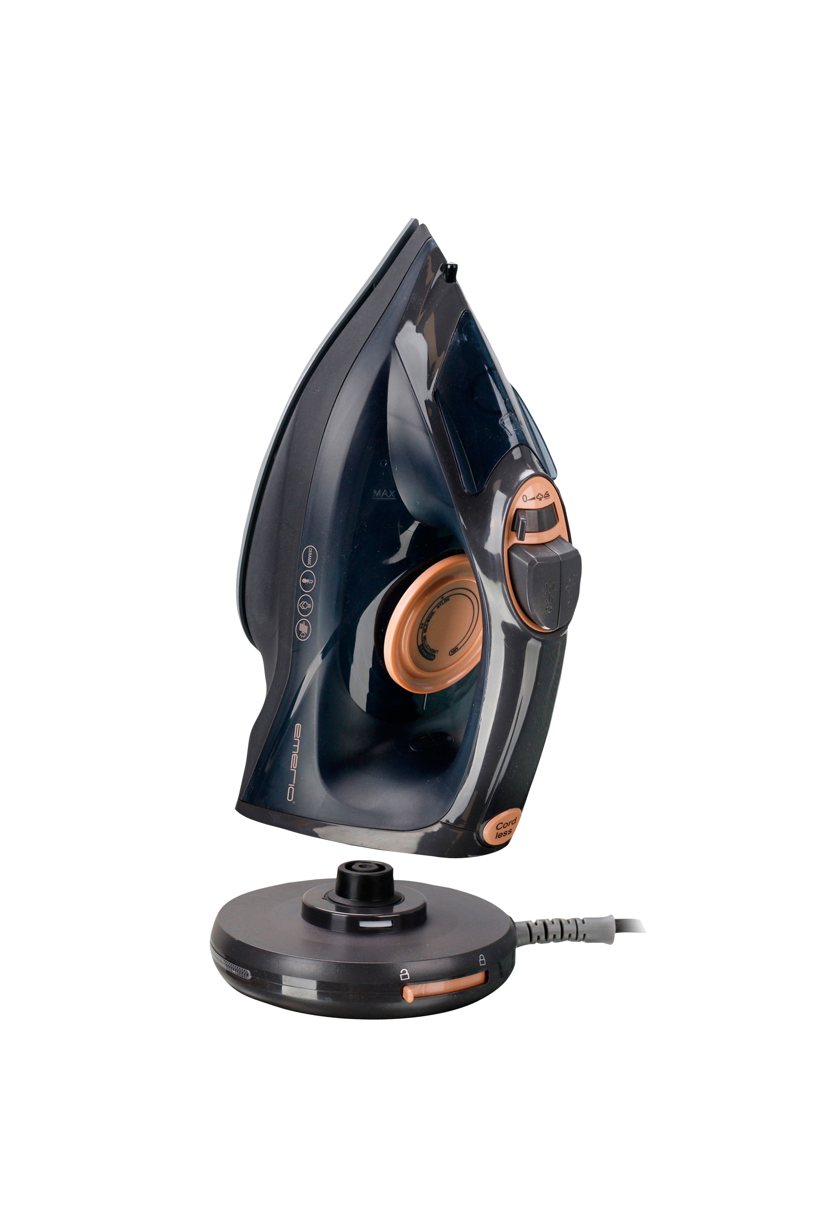 Effektivt og funktionelt dampstrygejern, der renser sig selv og har strygesål med keramisk belægning og dampfunktioner for hurtig og effektiv strygning.