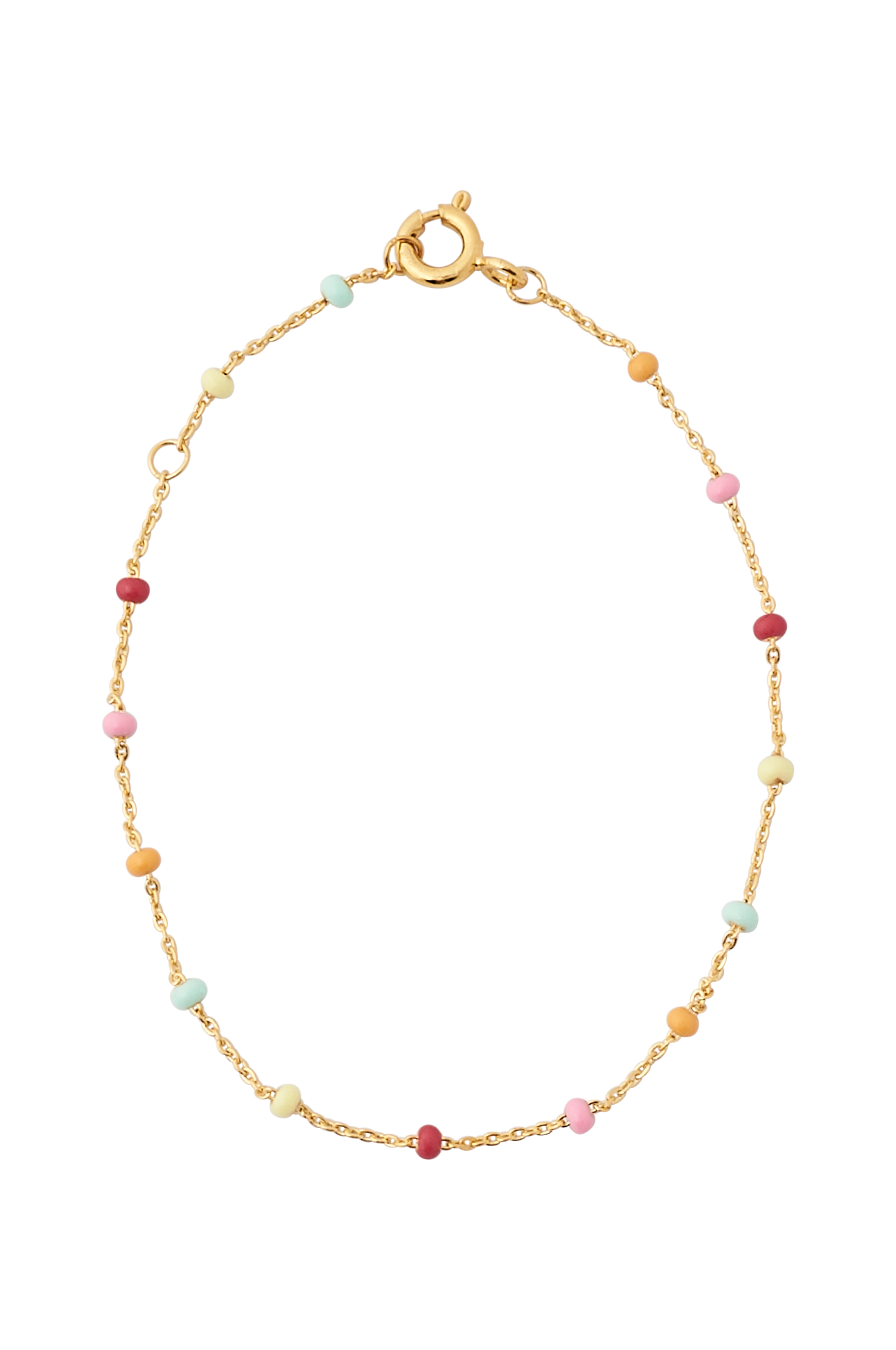 Armbånd af 18k guldpletteret sølv med farvede emaljeperler. Justerbar størrelse 15,5-17,5 cm.