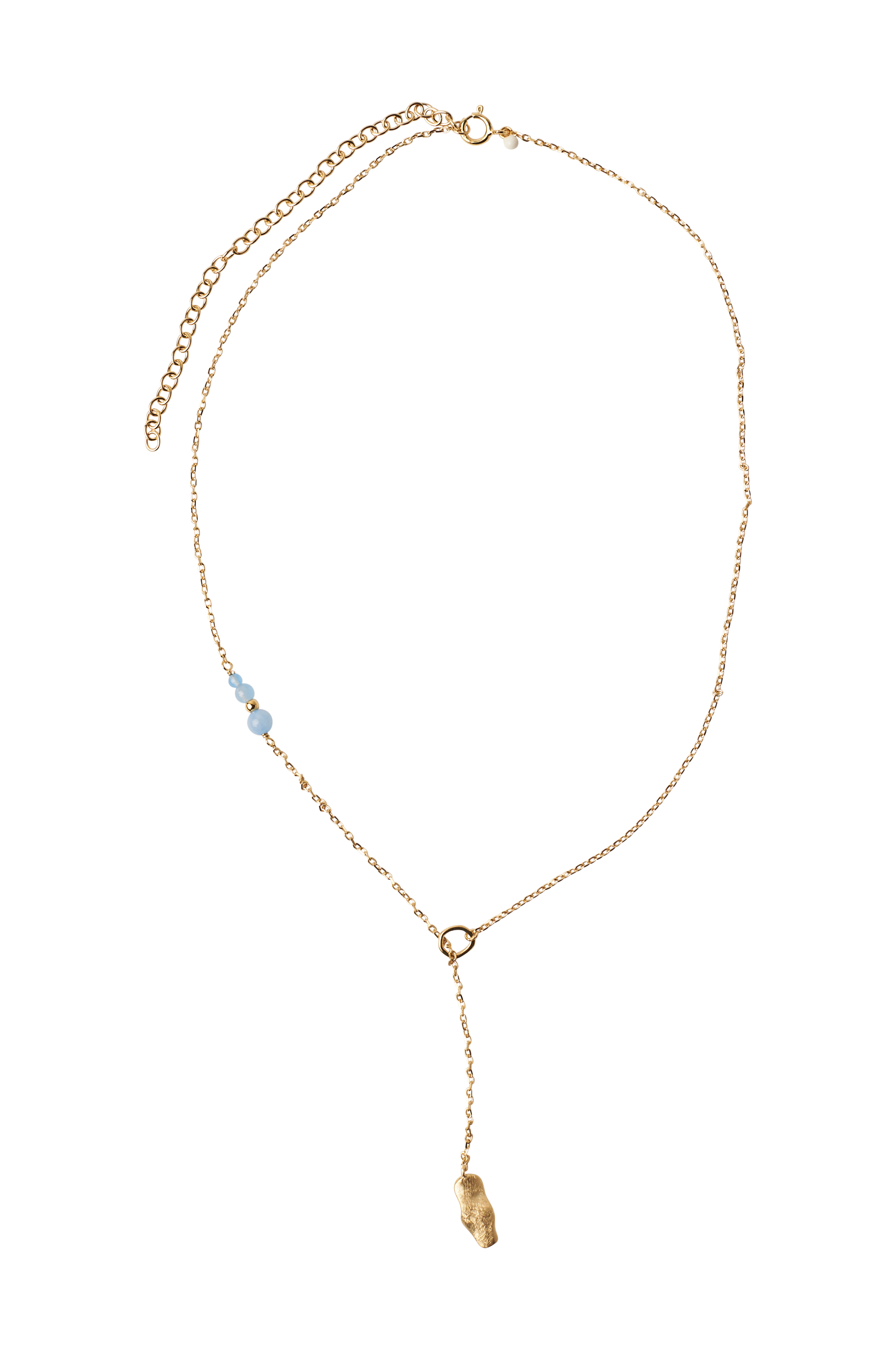 En unik halskæde som kan justeres så den sidder tæt rundt om halsen eller hænger lidt løst. Tynd kæde i 18 k guldpletteret sølv med vedhæng og små runde aventuriner.