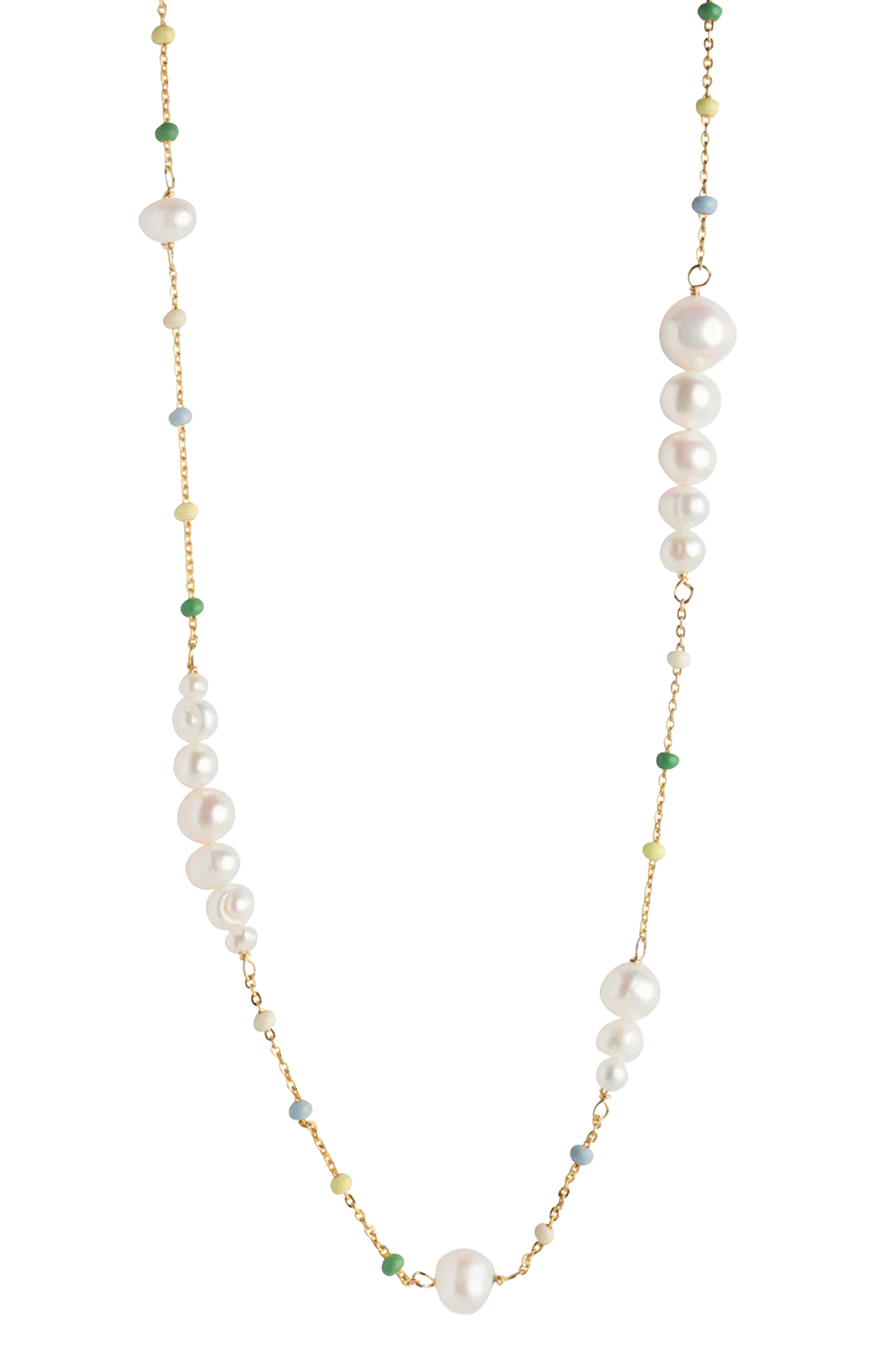 • 18K guldbelægning kæde i sterlingsølv med ferskvandsperler• Længde 38 + 2 + 2 cm
