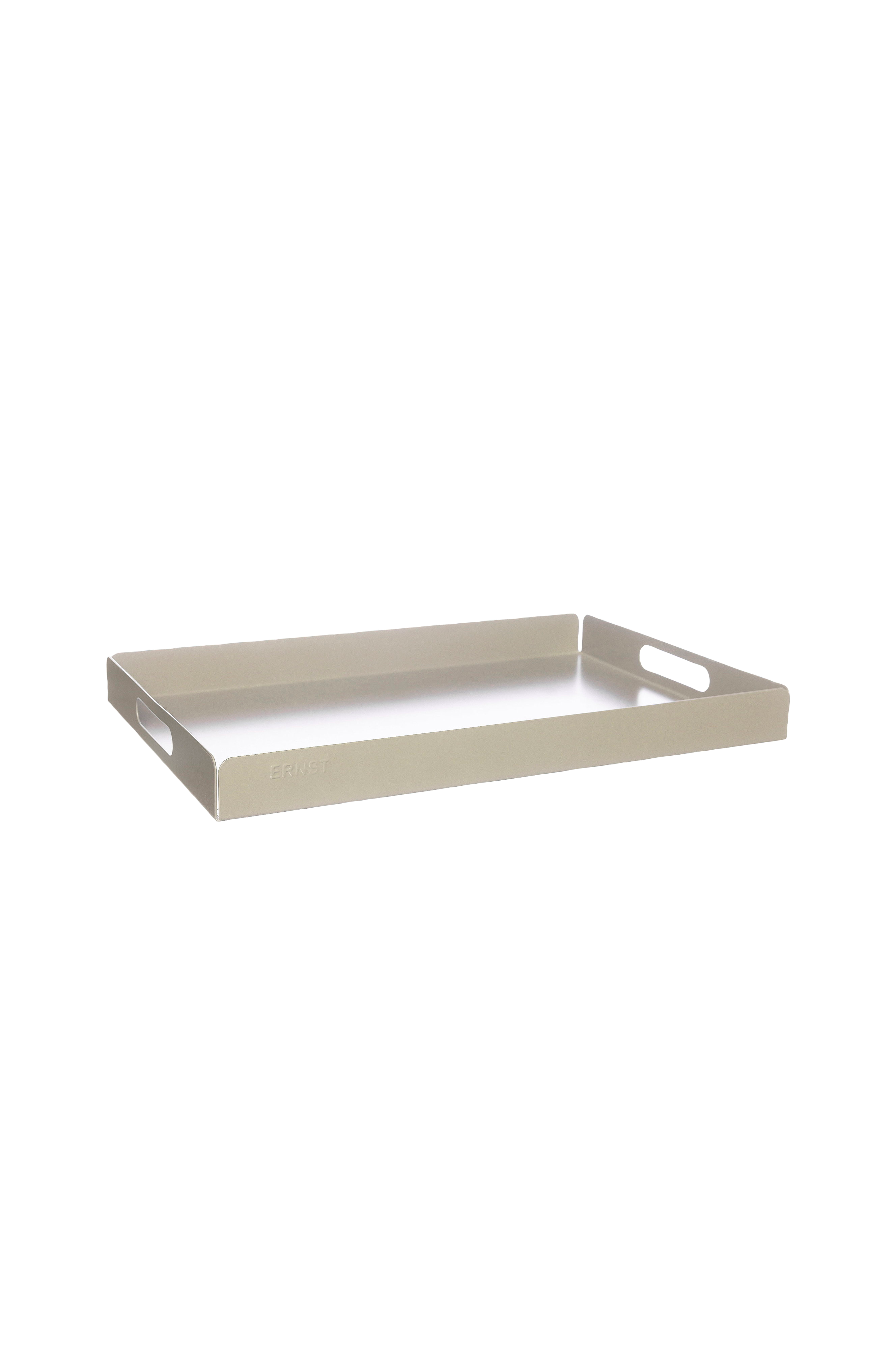 Ernst Bakke i metal i den harmoniske farve muldvarp. Med sin rene form og dæmpede farve er den perfekt til både servering og som en smuk base for dine personlige detaljer. En klassisk bakke, der skaber en følelse af ro og orden, uanset om den bærer morgenmad på sengen eller en aftensnack på sofaen.