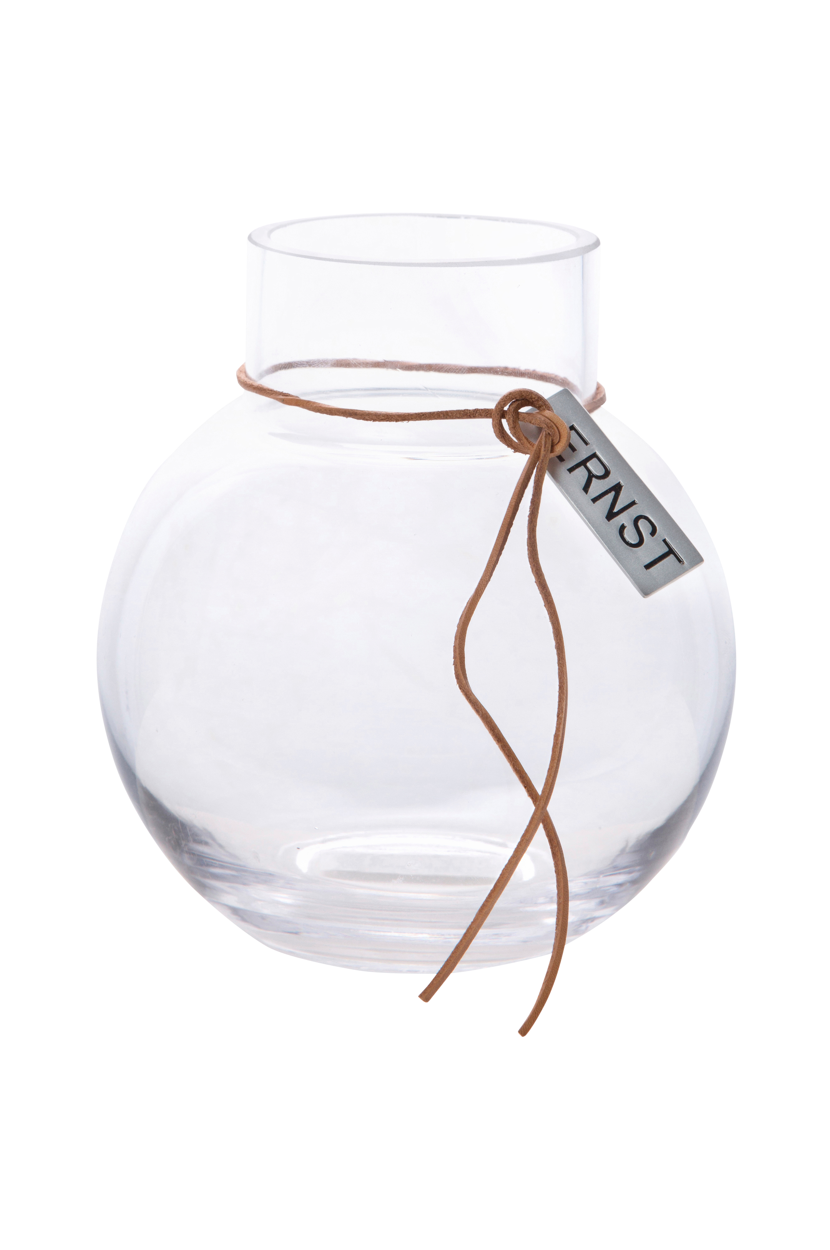 Stueplanter og blomster skaber liv og glæde i hjemmet. I ERNST krukke/vase med læderbånd kan du skabe smukke blomsterarrangementer. Størrelse: diameter 13 cm, h 14 cm. Findes i flere størrelser.