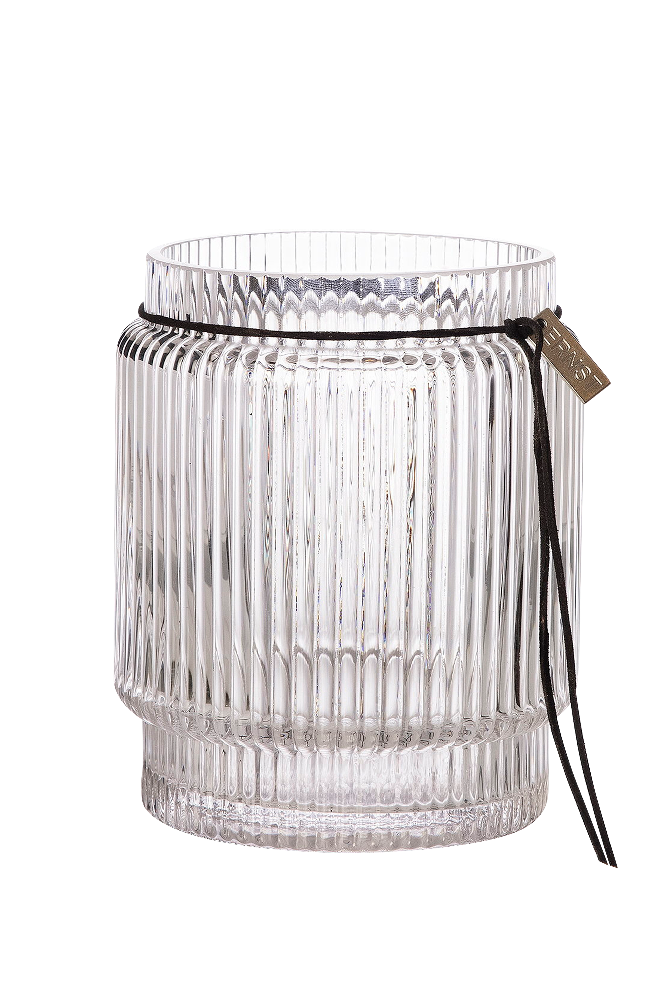 Blomster skaber liv og glæde i ethvert hjem. I ERNST lige glasvase kan du skabe smukke blomsterarrangementer. Vasen bliver ekstra elegant med sin lilla fod og det klassiske læderbånd er en fin detalje. Kan også bruges som lysestage.