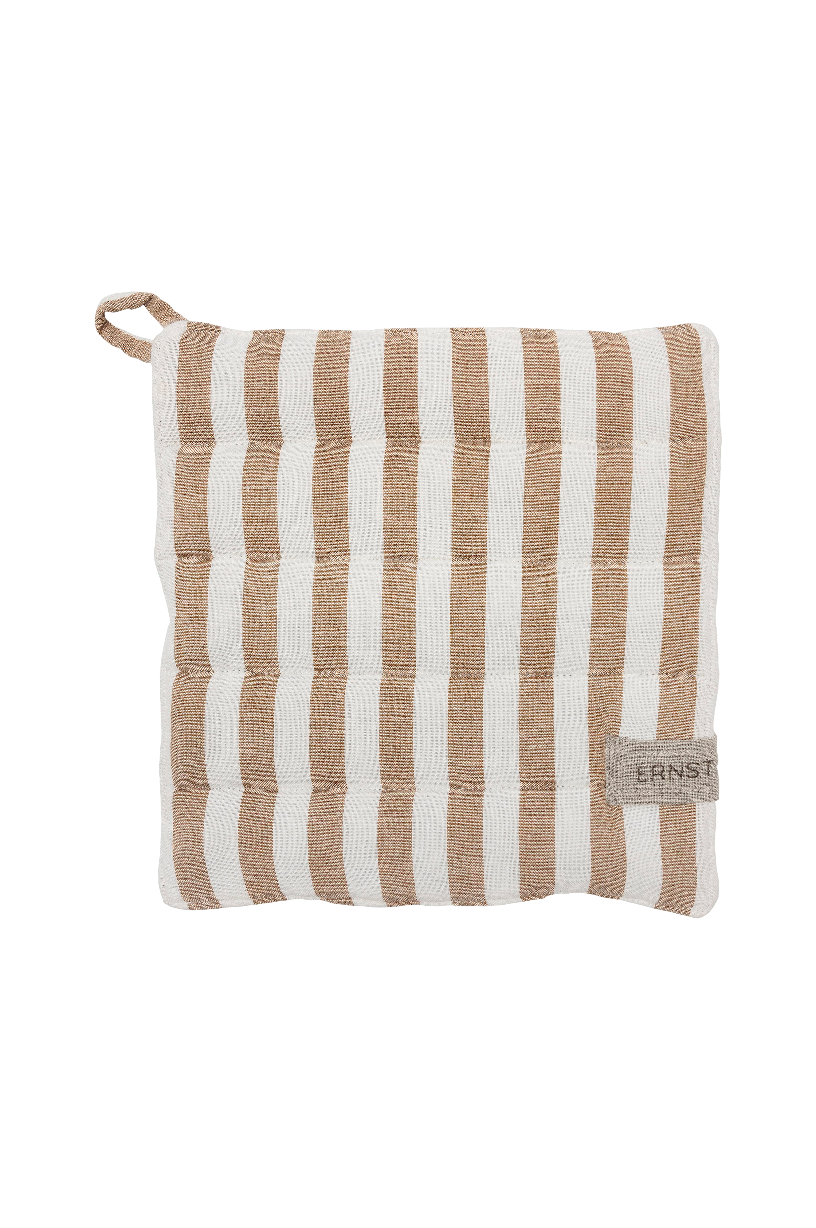 ERNSTs stribede grydelap er en pålidelig ven i køkkenet, når man skal håndtere varme gryder og fade. Med sin praktiske løkke kan den altid hænge lige ved hånden, klar til næste øjeblik ved komfuret. For en harmonisk køkkenstil er der også matchende ovnhandsker og viskestykker i samme tidløse serie.