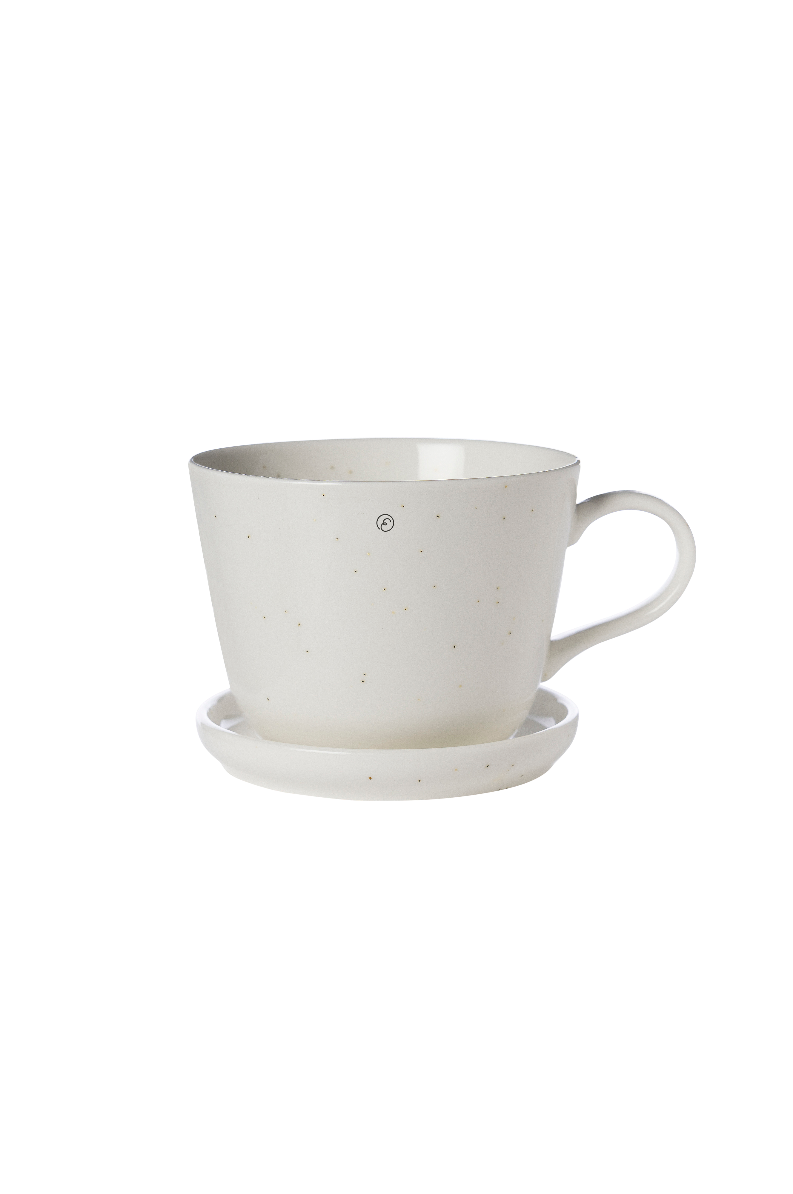 ERNST kaffekop med underkop i porcelæn indgår i en større serie med flere forskellige dele. Frisk farve med strejf af små prikker. Gør kaffetiden ekstra behagelig.