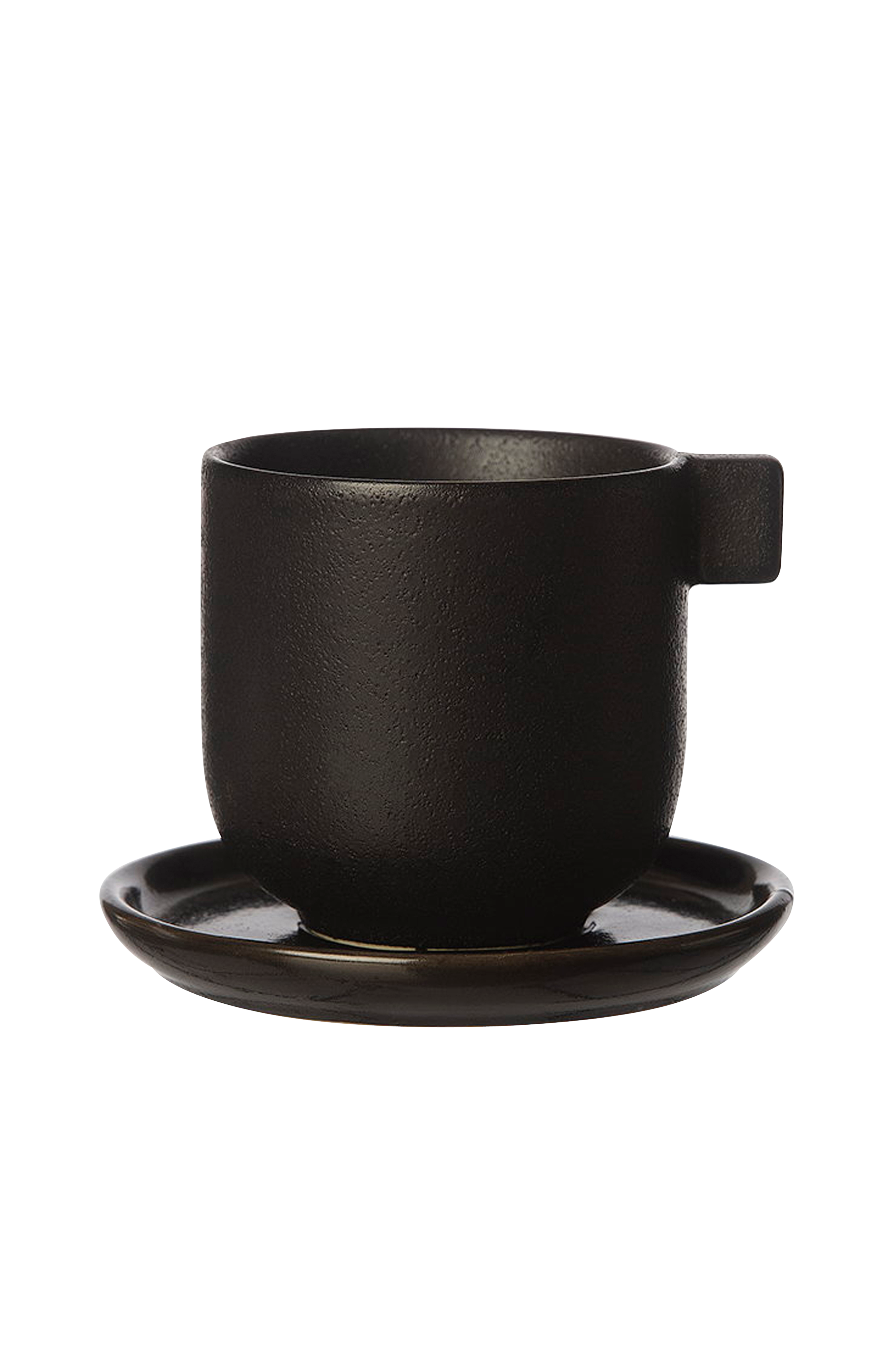 ERNST glaseret kaffekop med underkop i stentøj fås også i sort og som tekop.