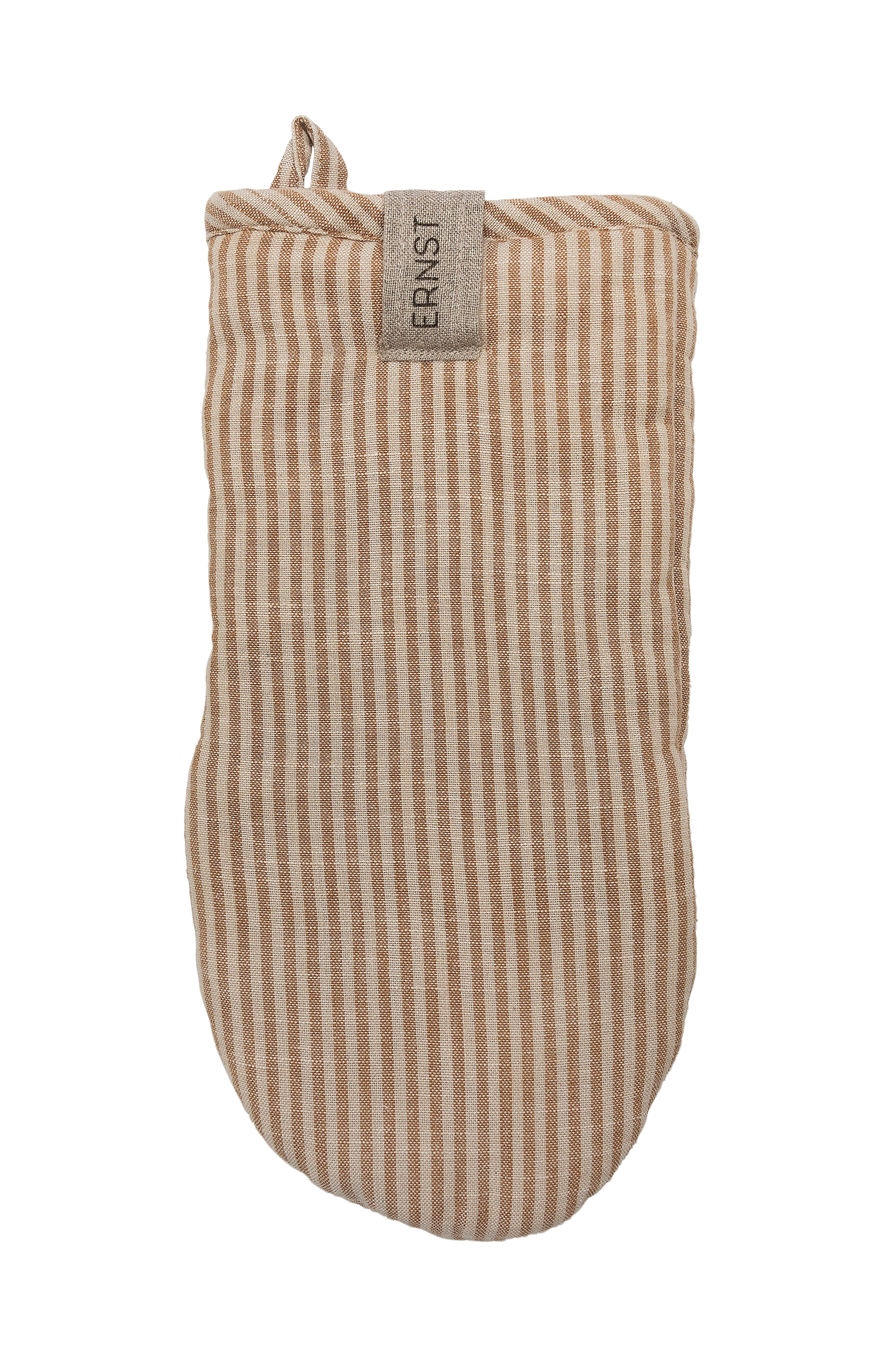 Ernst Den stribede ovnhandske er en pålidelig følgesvend i køkkenet, hvor hver eneste detalje gør en forskel. Med sit bløde stof beskytter den dine hænder mod varme gryder og bageplader, samtidig med at den giver en følelse af enkel komfort. Kombiner den gerne med grydelapper og viskestykker fra samme serie for at få en harmonisk helhed i køkkenet.
