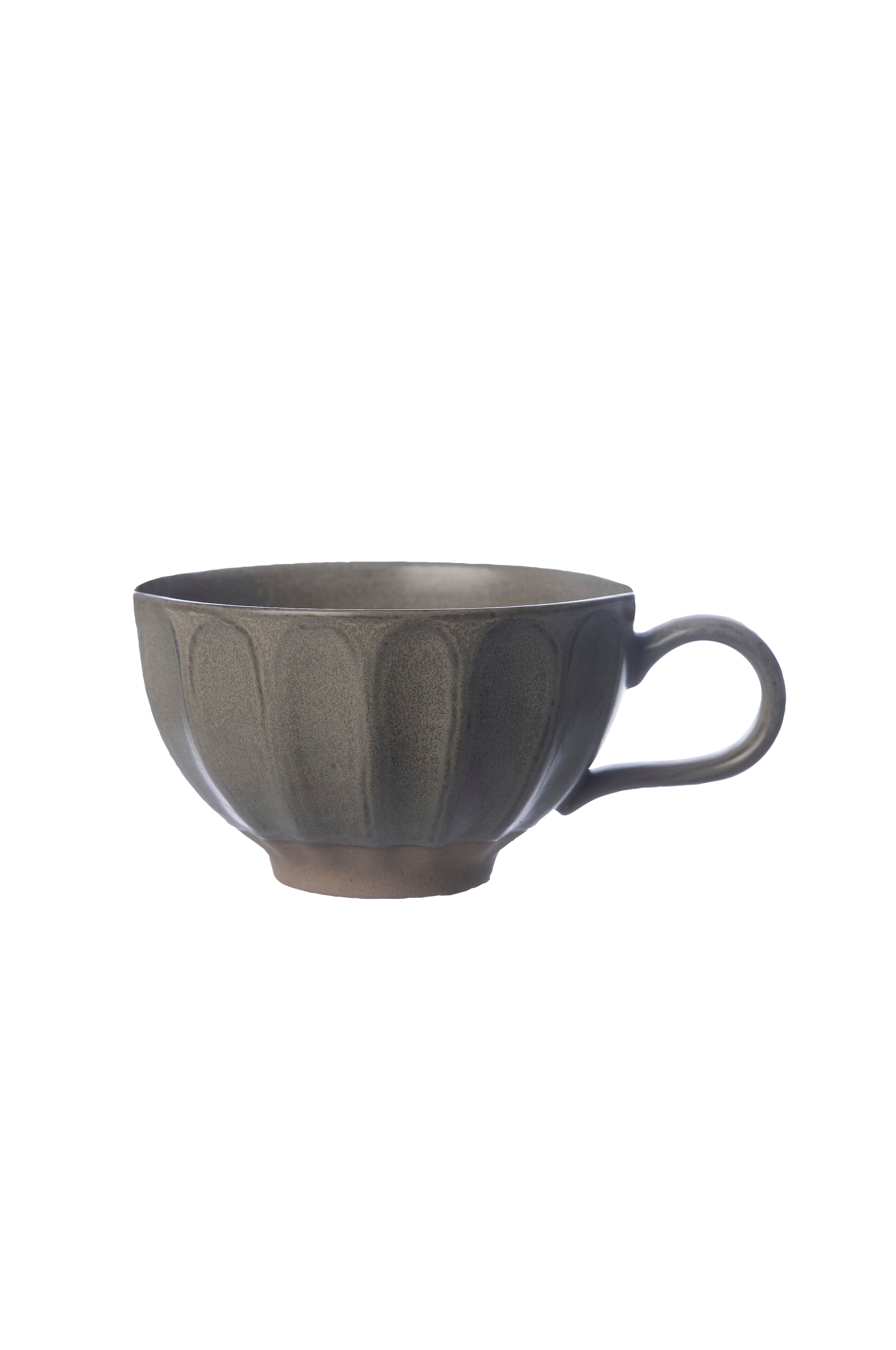 En tekop i blødt formet keramik med naturlig glasur. Behagelig at holde i hænderne - til øjeblikke, hvor du vil lande i fred. 2-pak.