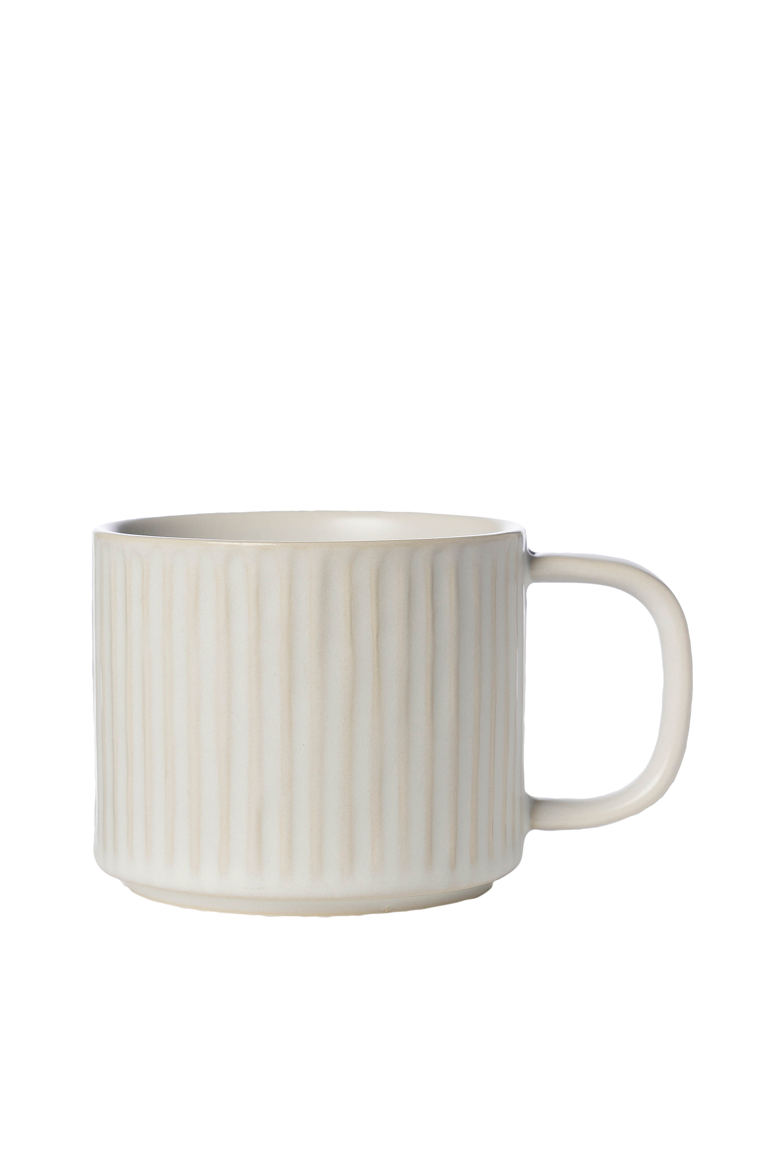Ernst Tekoppen med ribbet struktur i naturhvid indbyder til fredfyldte stunder. Den blide farve og den blødt riflede overflade giver en behagelig fornemmelse.