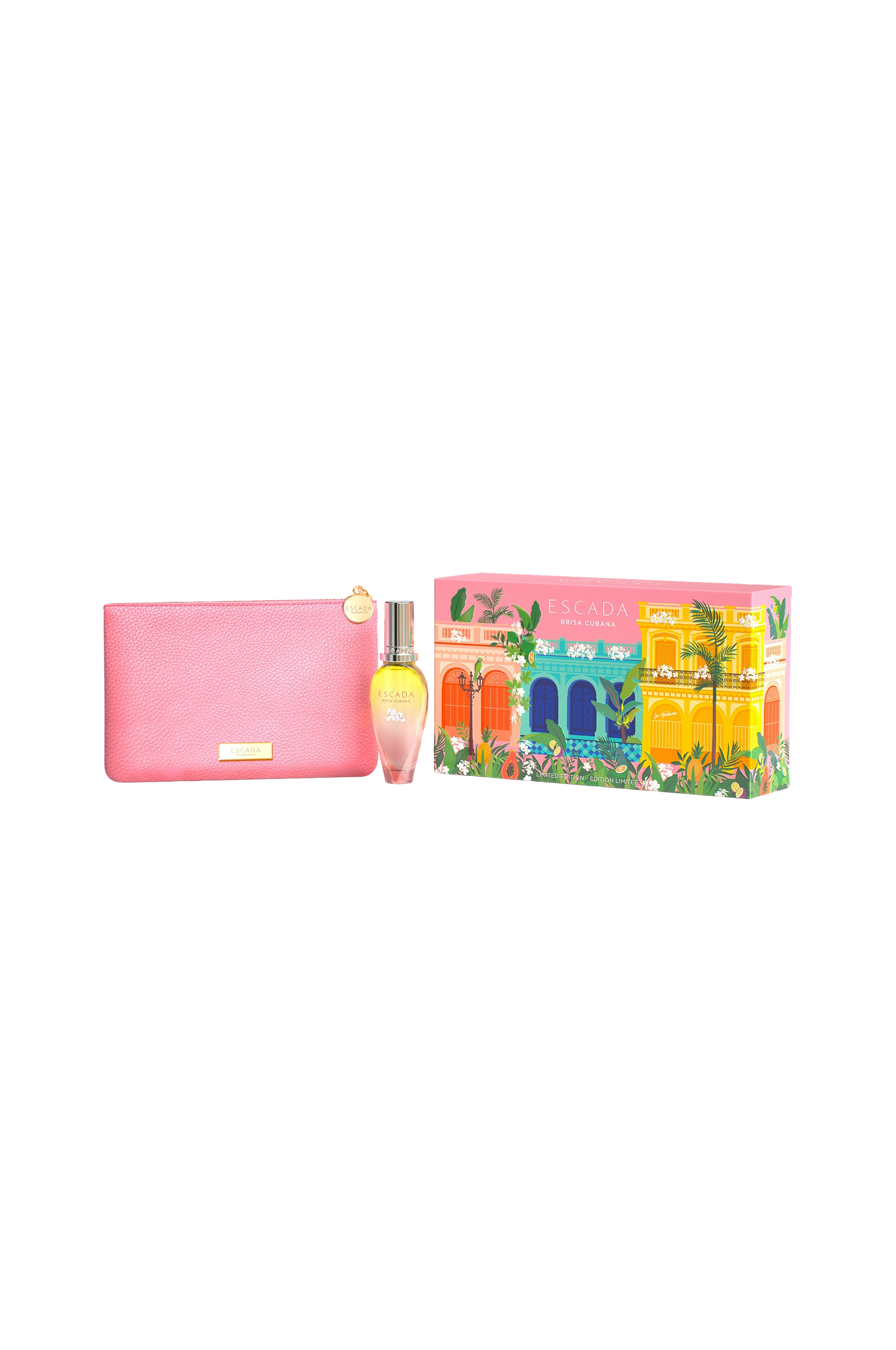 Escada Brisa Cubana Fragrance-sæt indeholder:- Escada Brisa Cubana Limited Edition Eau de Toilette til kvinder, 30 ml- Rosa makeuppung, 1 stk
