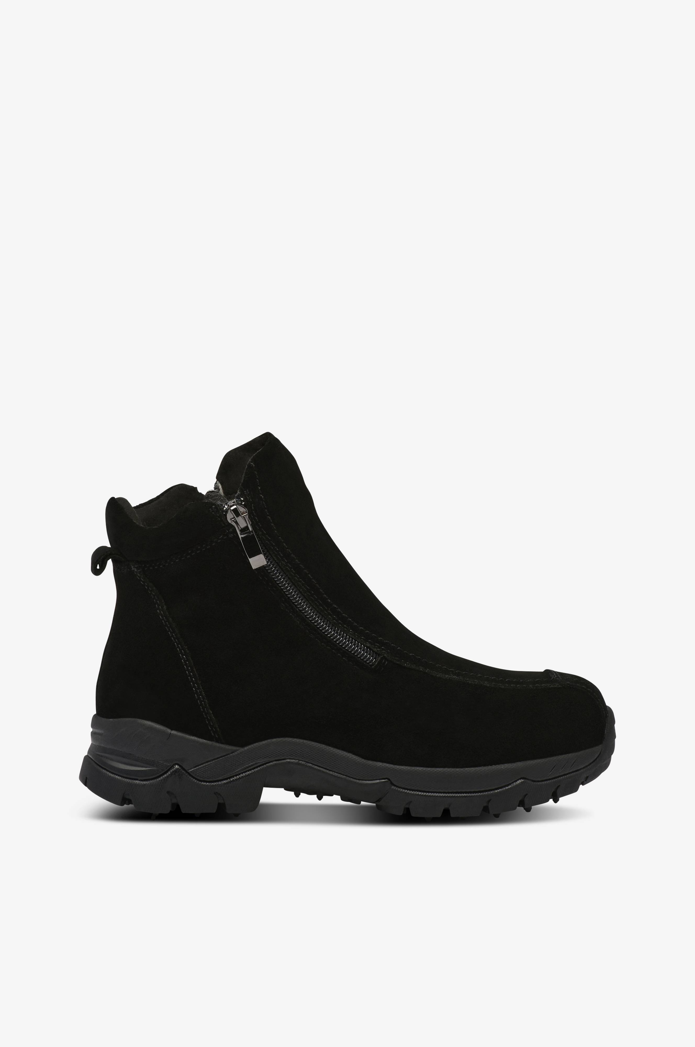 • Varmt forede Vinterstøvler • Øvredel i ruskind • Varmt for i fåreuld • Lynlåse på begge sider af skaftet • Ydersål i gummi med dupper i hærdet stål • Skafthøjde: 10 cm i str. 37
