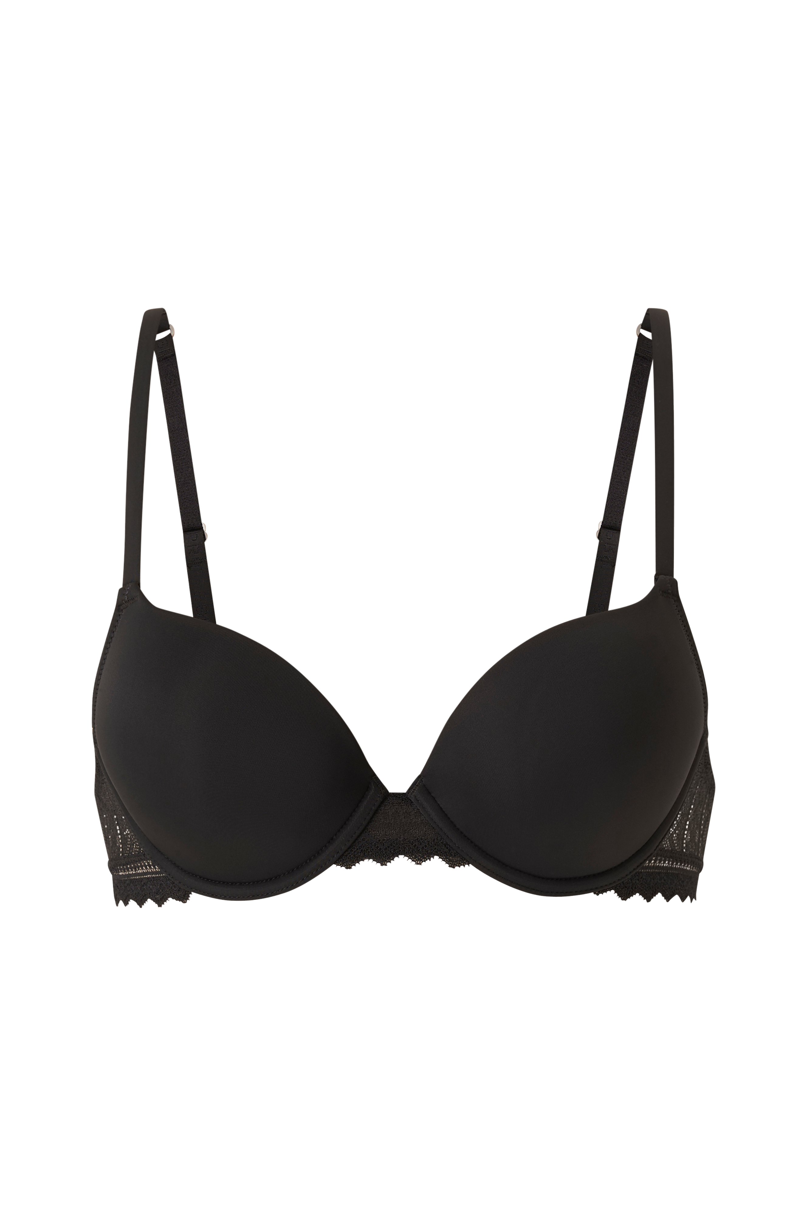• Tynd polstring• Støttende bøjle• Blonde i siderne og bagpå• Justérbare skulderstropper• Hægtelukning i ryggen