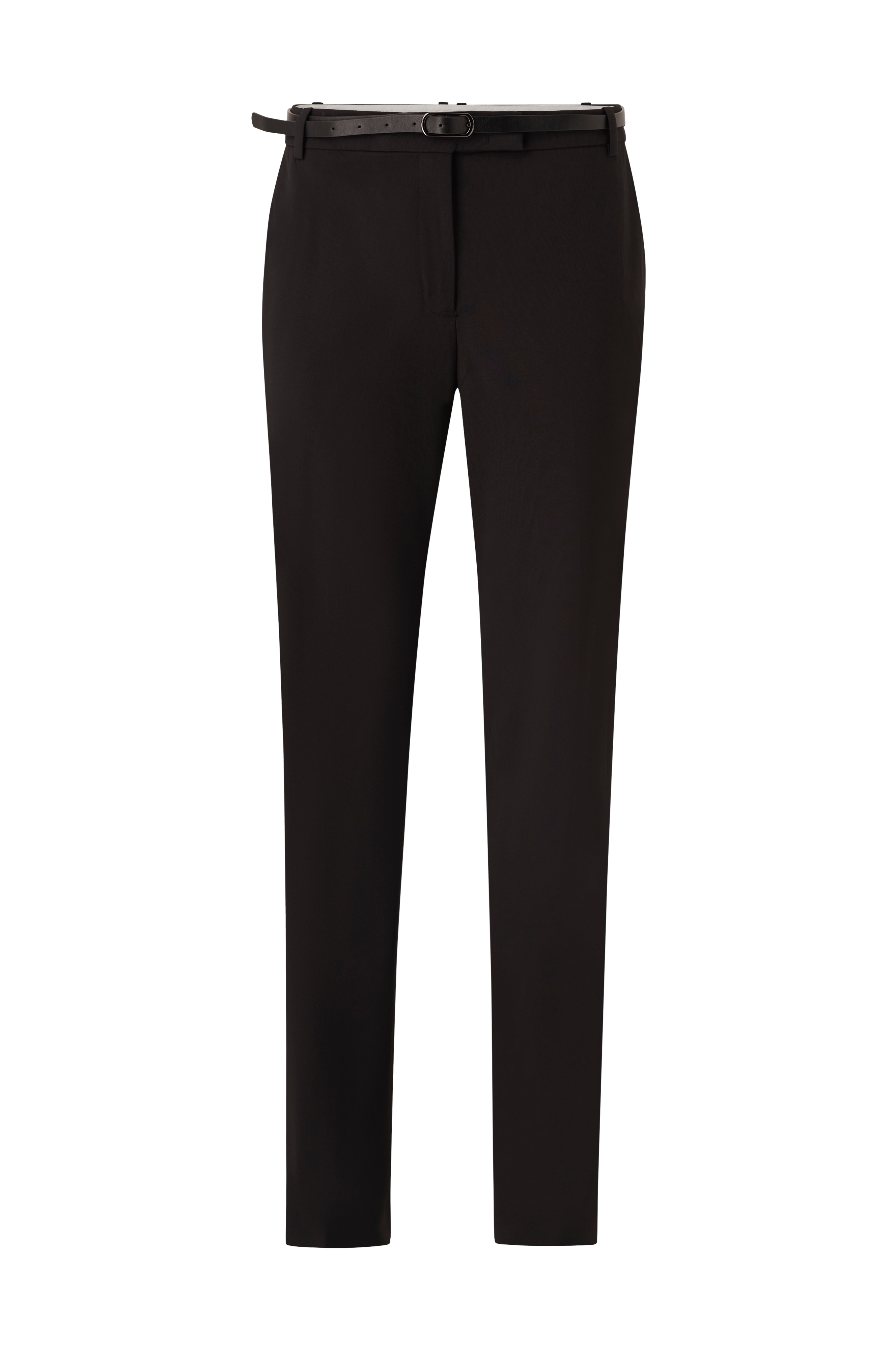 • Glat kvalitet med stræk• Smal linning med stropper og bælte med metallukning• Skjult hægtelukning• Sidelommer• Snydelommer bagpå• Indre benlængde: 80 cm i størrelse 36