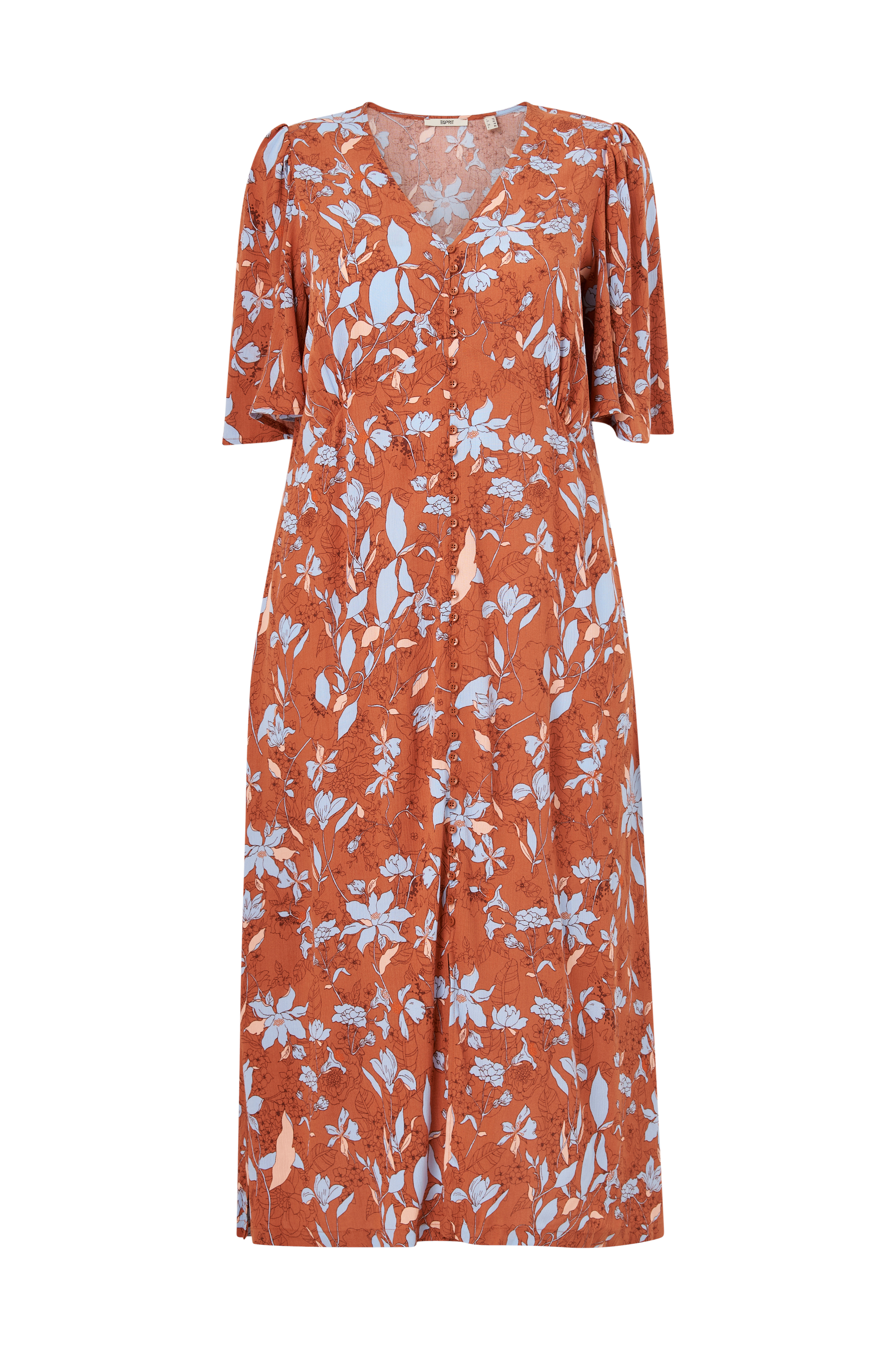 • Lang kjole i viskose • V-udskæring • Dekorative knapper foran • Halvlange, brede sommerfugleærmer • Slidser i siderne • Rynket kvalitet • Store størrelser • Længde: 135 cm i størrelse 44