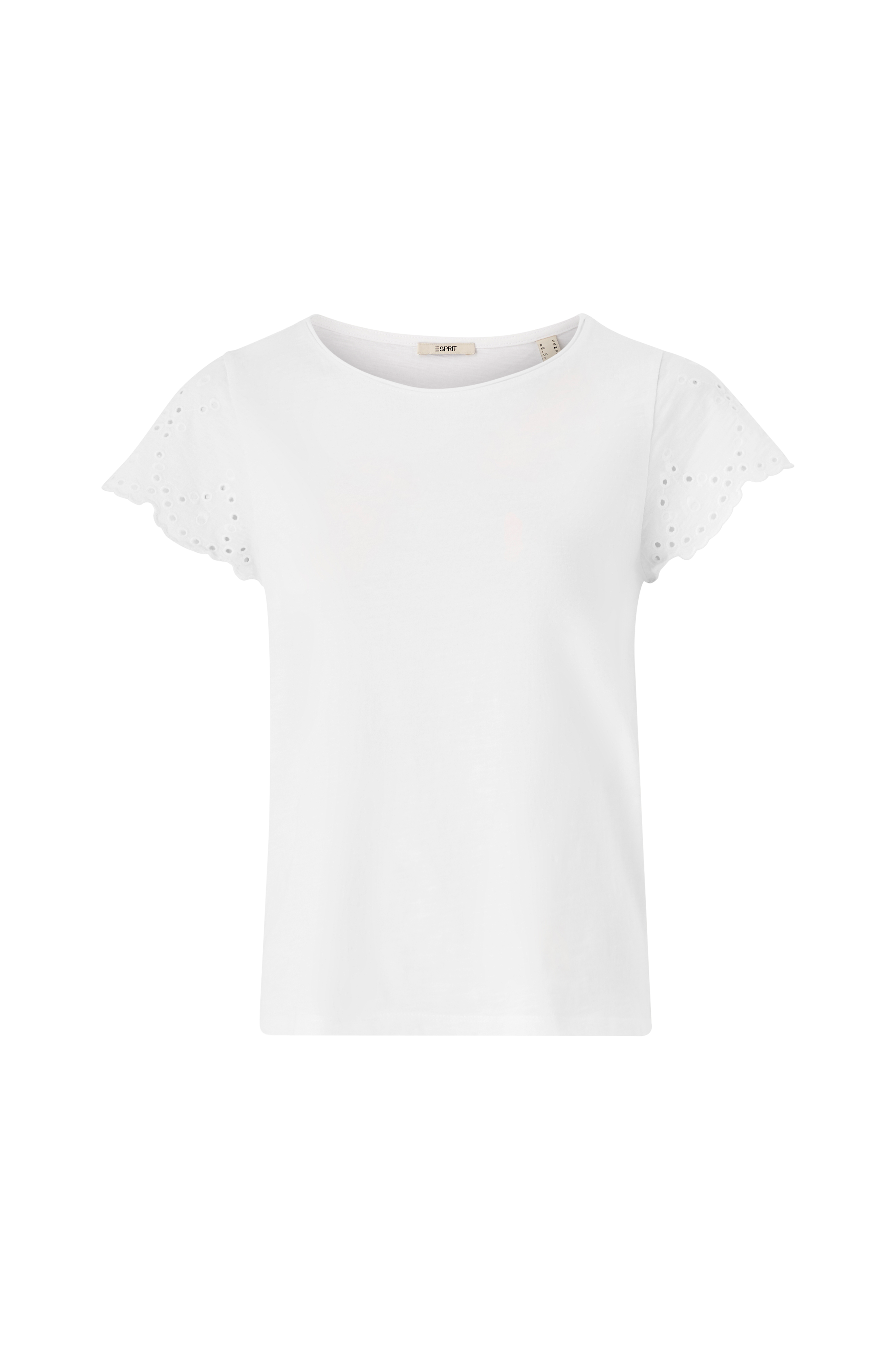 • Fremstillet af bomuld• Rund halsudskæring med rullet kant• Korte ærmer med hulbroderi