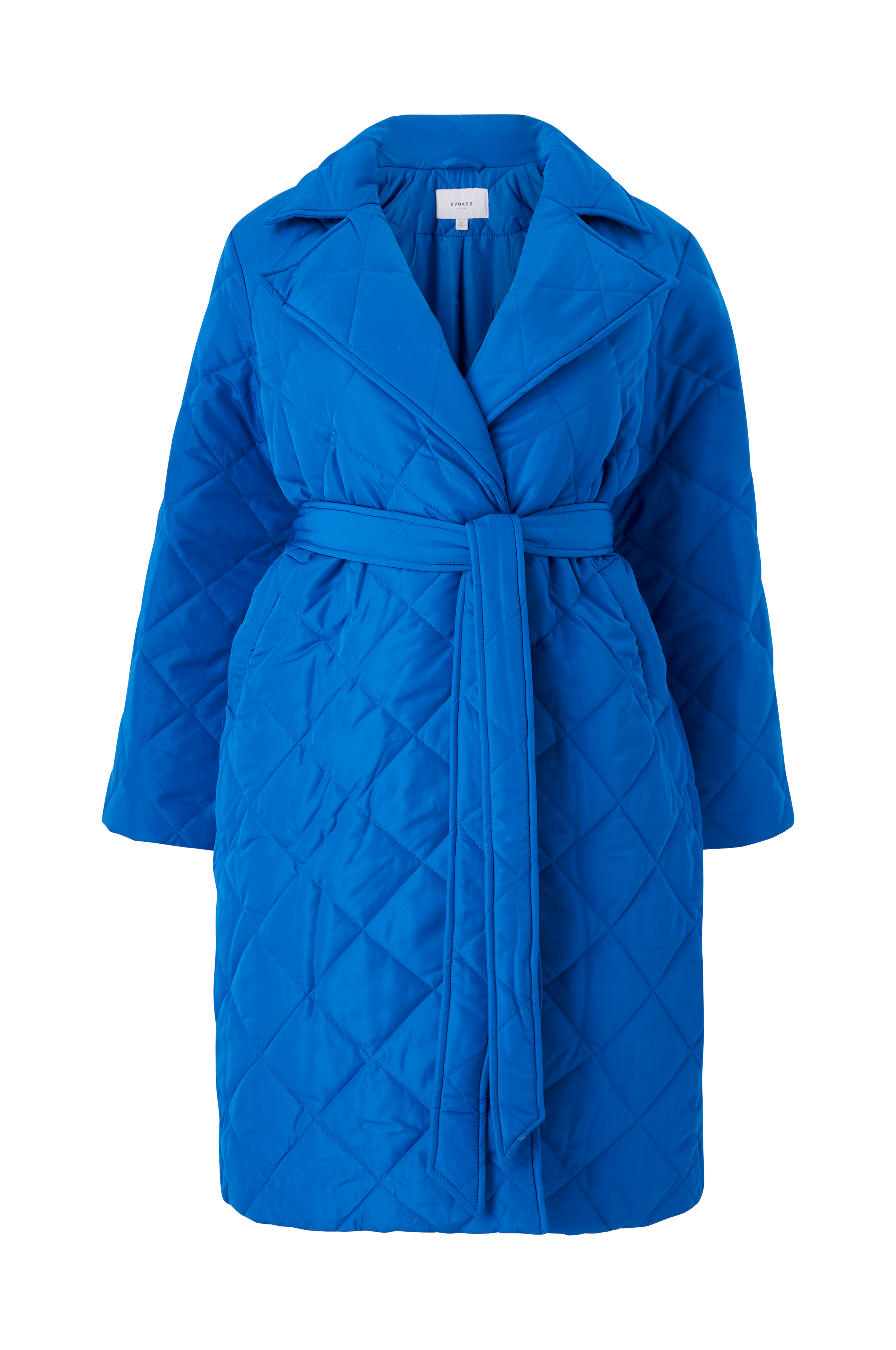 • Store størrelser• Foret, quiltet model• Stor krave med revers• Skjult trykknap foran• Stropper med bindebælte• Indlagte lommer• Længde: 110 cm i størrelse 46