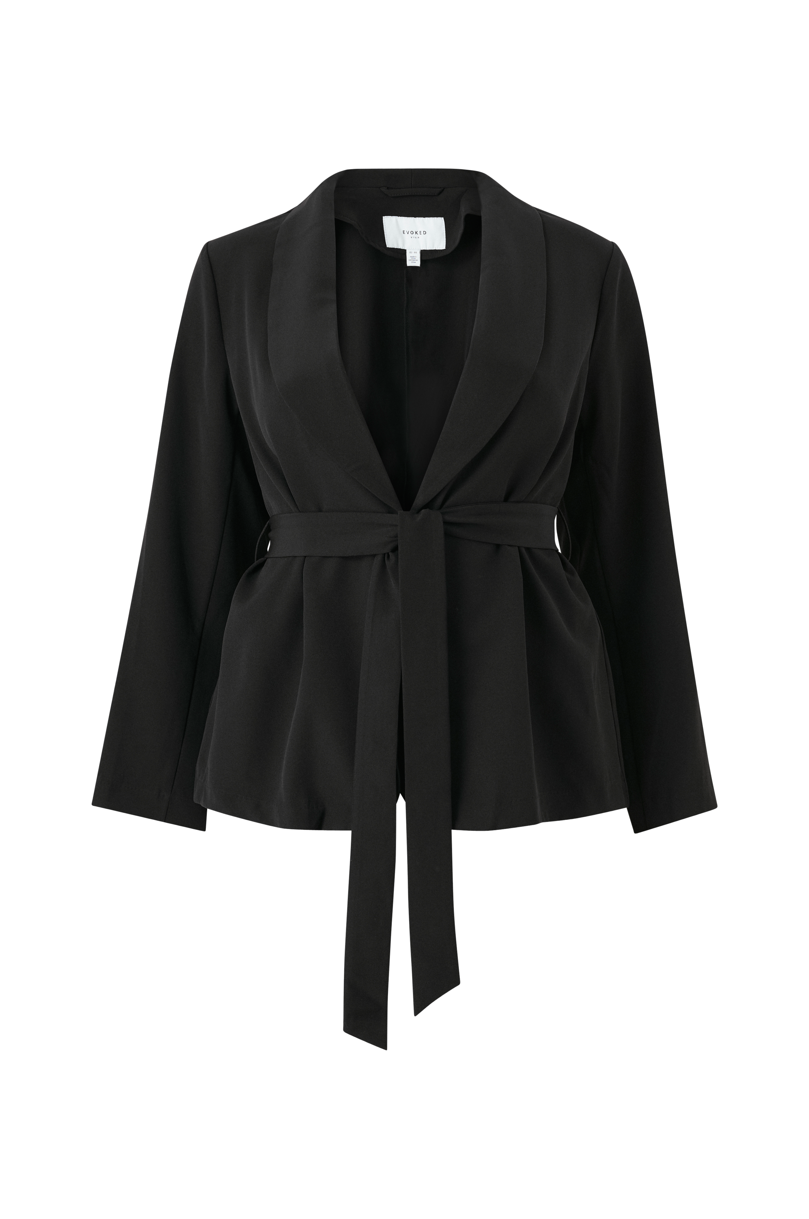 • Store størrelser• Lige model• Sjalskrave• Stropper med bindebælte ved taljen• En skjult spændelukning foran• Lige ærme• Uforet• Længde: 65 cm i størrelse 44