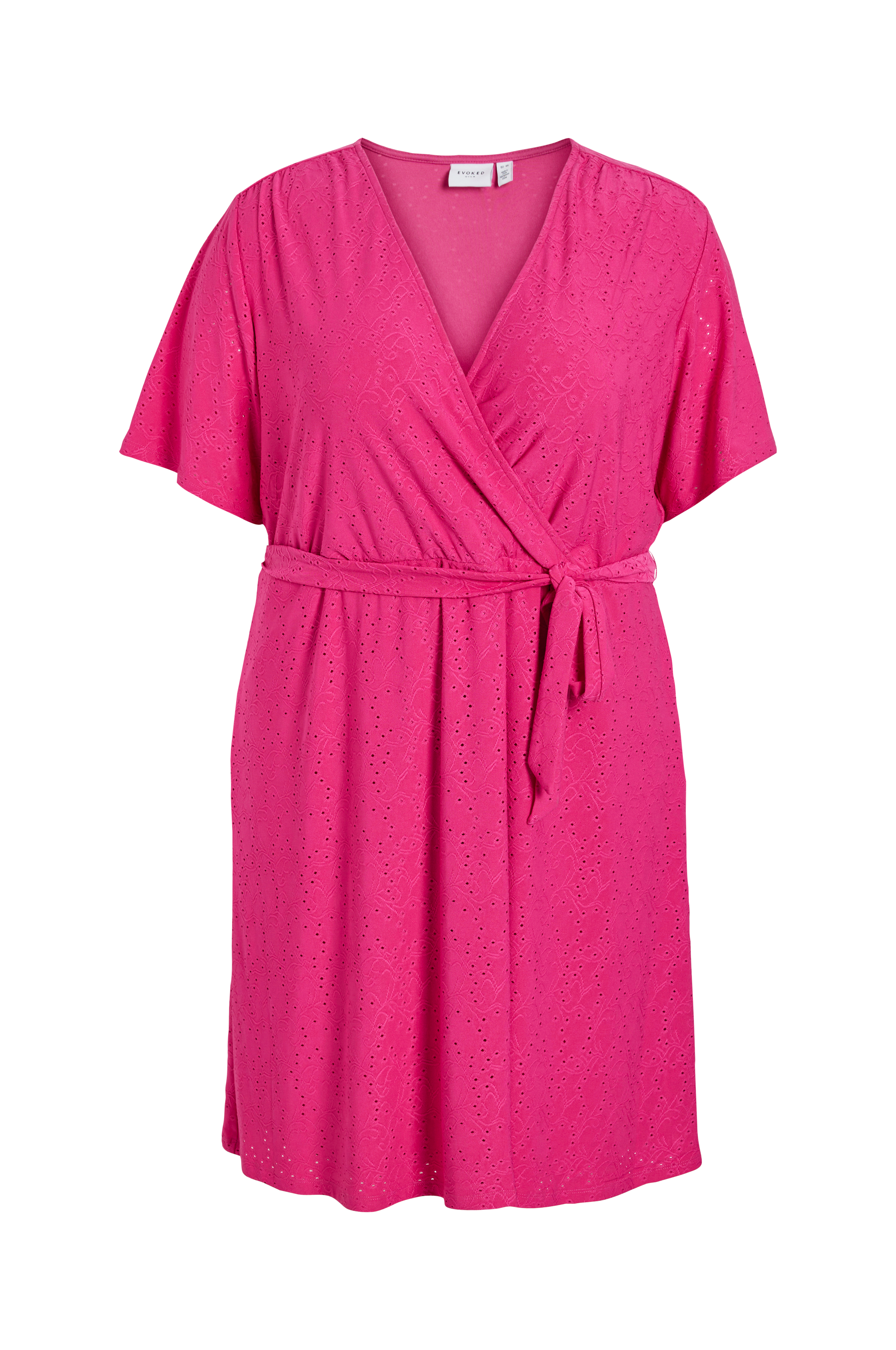 • Stor størrelse• Hulmønstret model i jersey• Slå-om design på toppen• Elastisk talje med bindebælte• Foret• Længde: 106 cm i størrelse 44