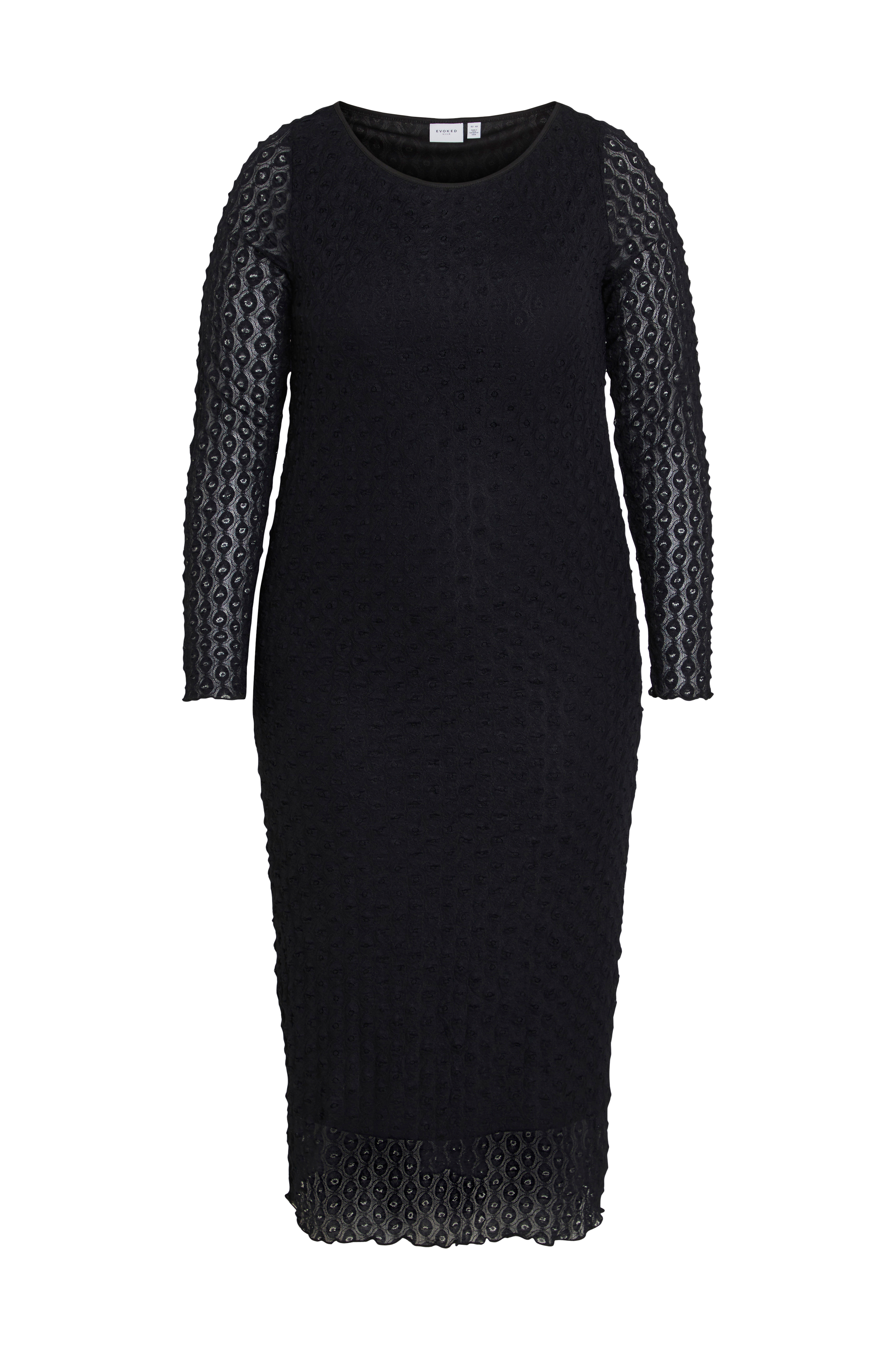 • Store størrelser• Lang, mønstervævet model• Rund, bred halsudskæring• Langt ærme• Foret• Længde: 127 cm i størrelse 44