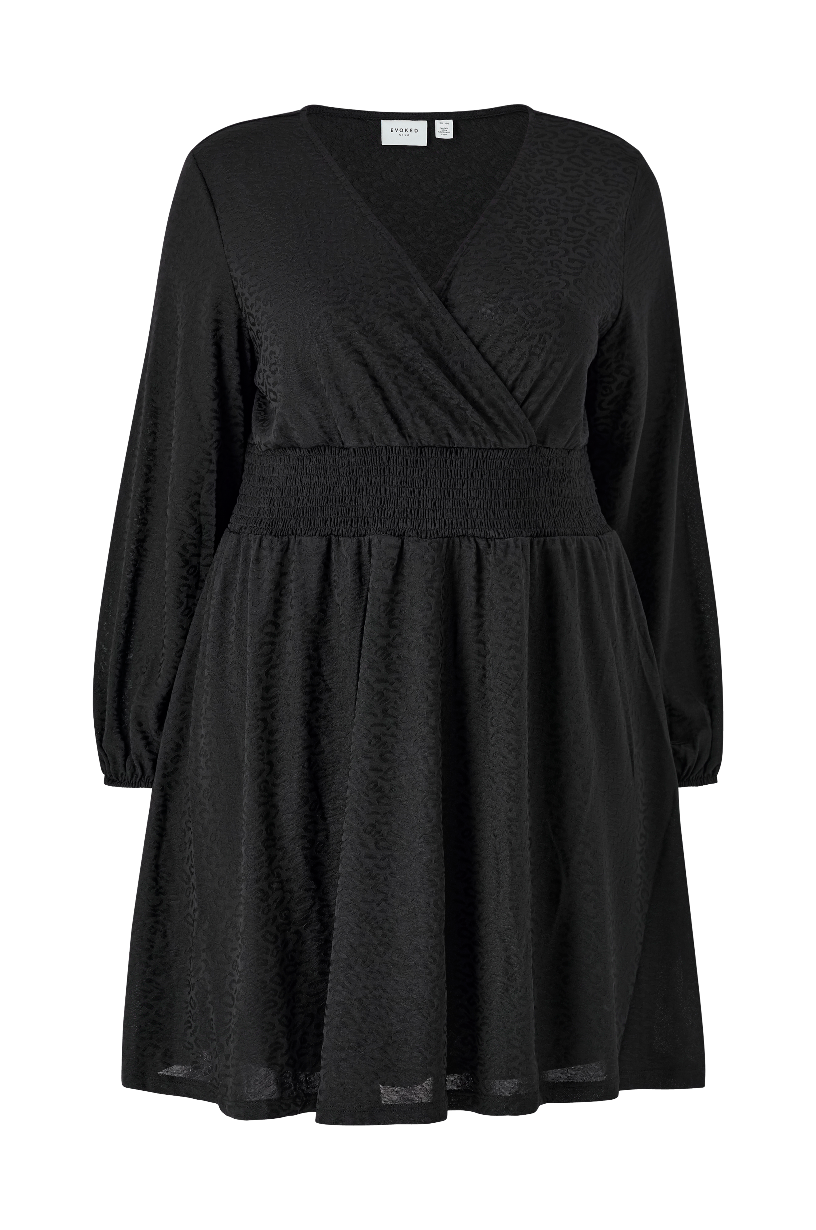 • Slå-om design på toppen• Smock ved taljen• Ballonærmer med elastiske manchetter• Store størrelser• Længde: 97 cm i størrelse 44
