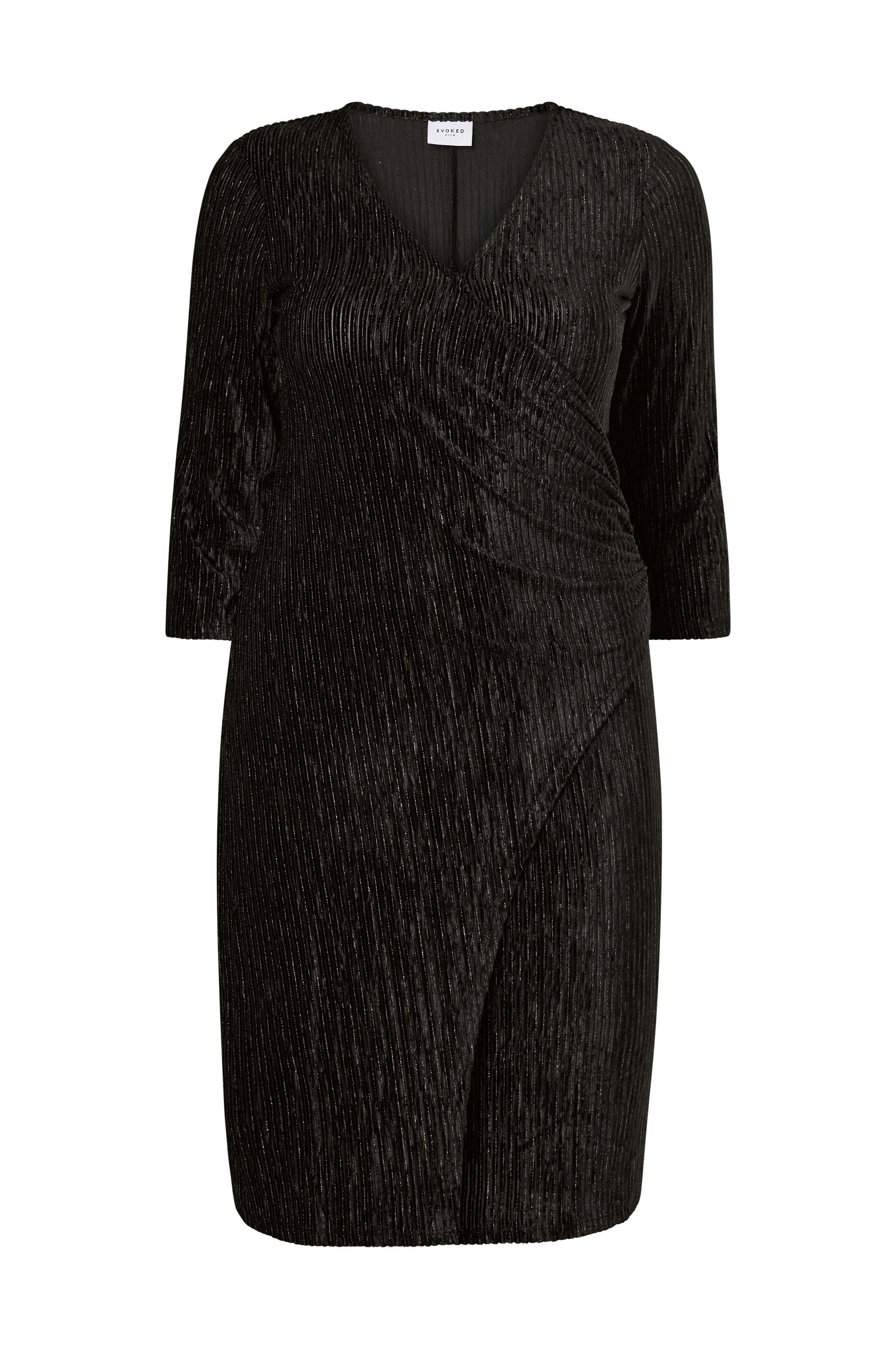 • Store størrelser• Glitrende model• Skjult trykknap på brystet• Drapering i siden• 3/4 langt ærme• Længde: 110 cm i størrelse 44