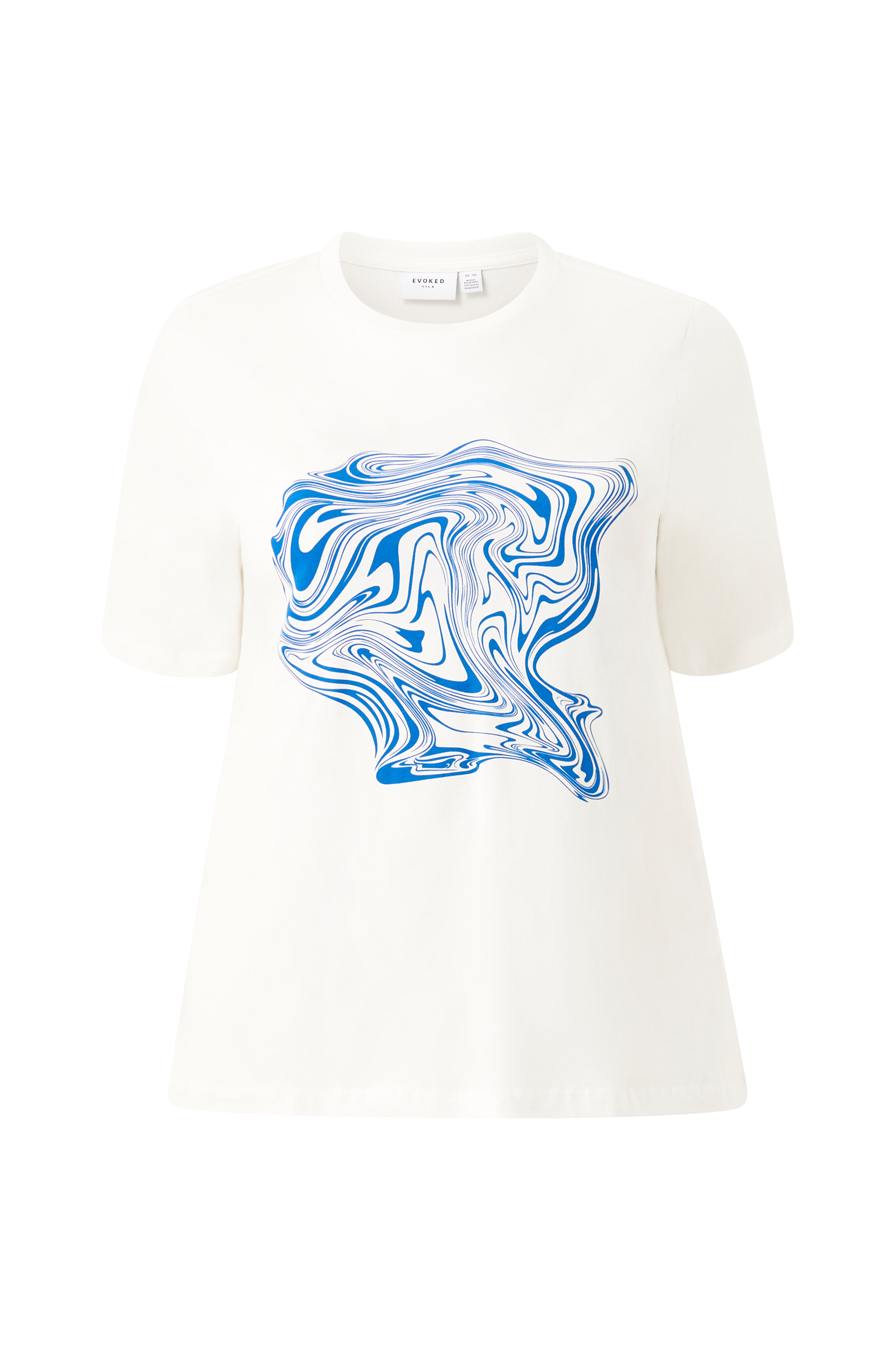 • Store størrelser • Kortærmet model • Tryk foran • Rund hals med ribkant • Produktet indeholder økologisk bomuld, som er dyrket uden kemiske sprøjtemidler, kunstgødning og genmodificerede afgrøder (GMO). Dette betyder et sundere arbejdsmiljø for landmænd og bedre jord.