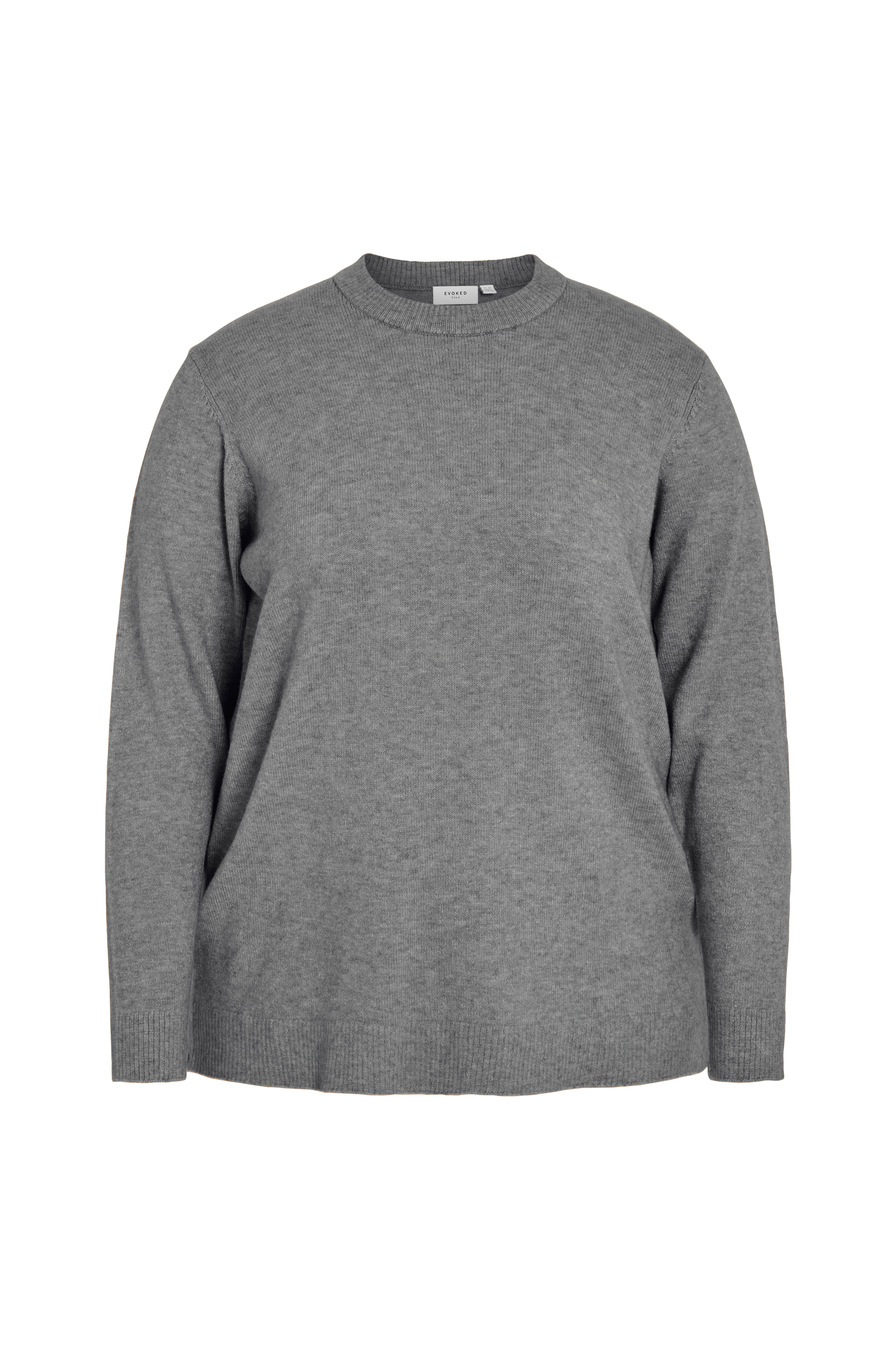 • Store størrelser• Lang, glatstrikket model• Halsudskæring med ribkant• Langt ærme• Ribstrik ved nederste kant og ved manchetterne