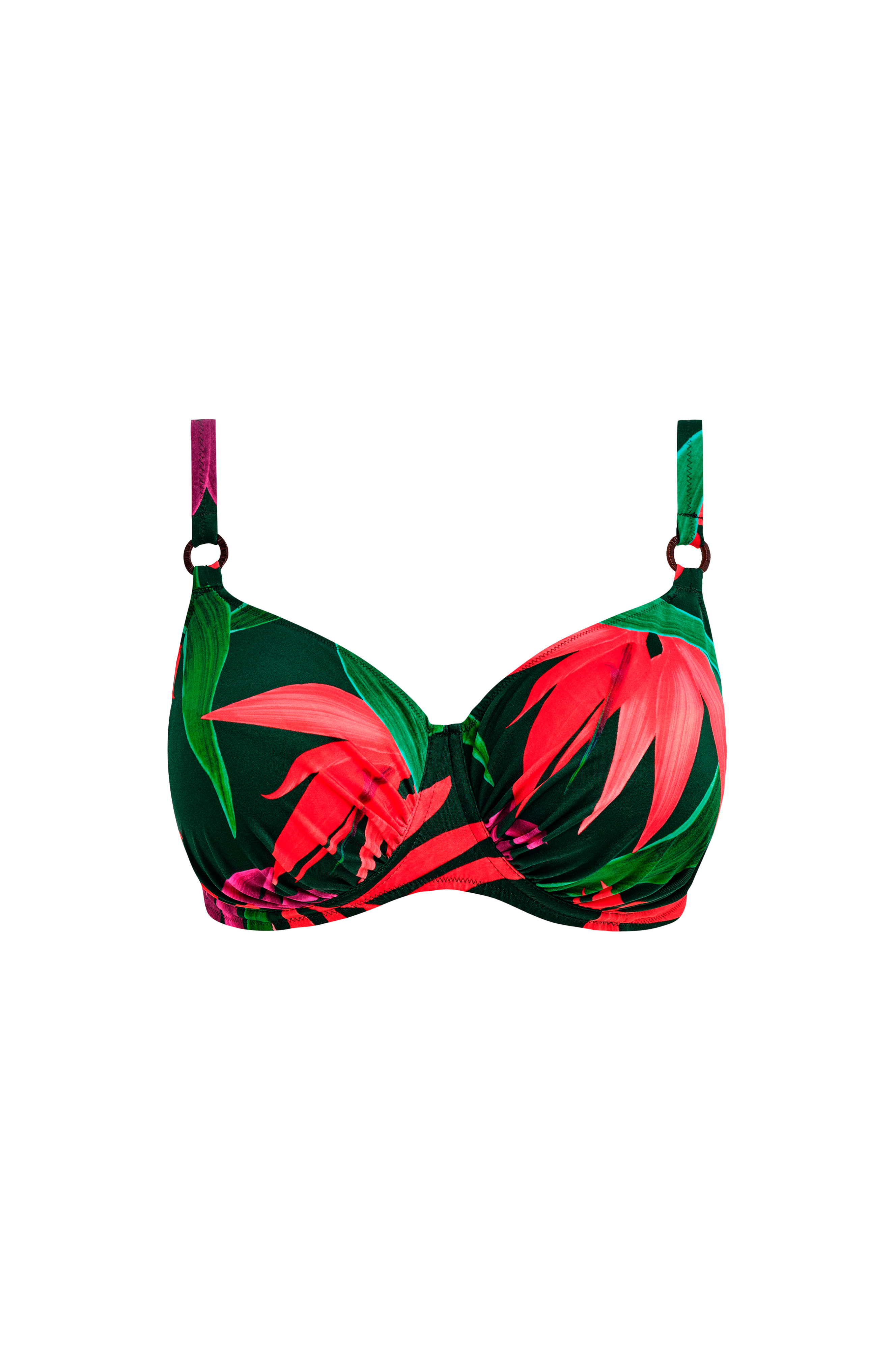• Bikini-bh i polyamid-blanding med tropisk mønster med foret skål og bøjle• Justérbare skulderstropper med ringdetalje foran• Spænde i ryggen