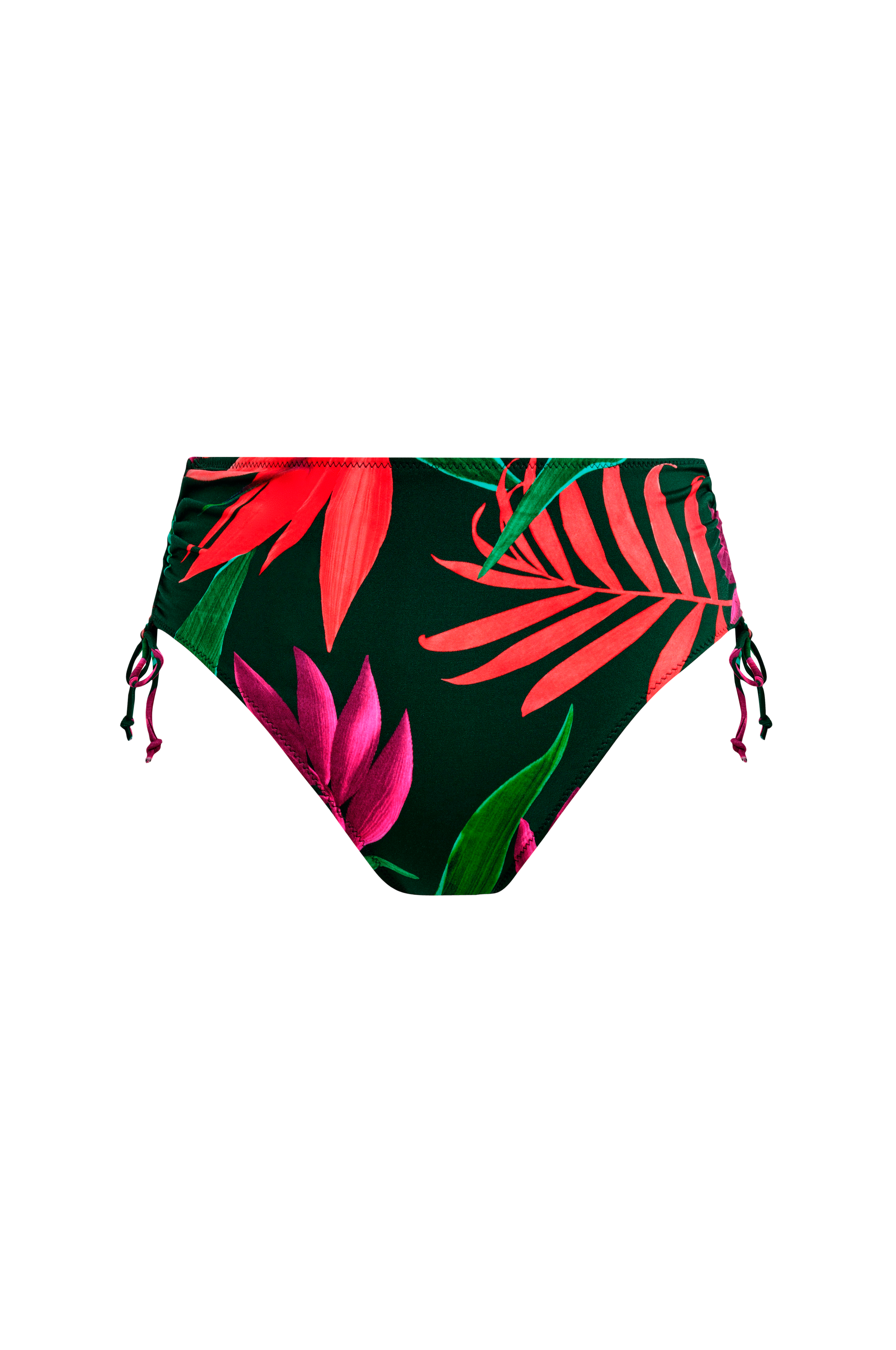 • Bikiniunderdel i polyamid-blanding med tropisk mønster• Høj talje• Justérbare træksnørrer i siderne