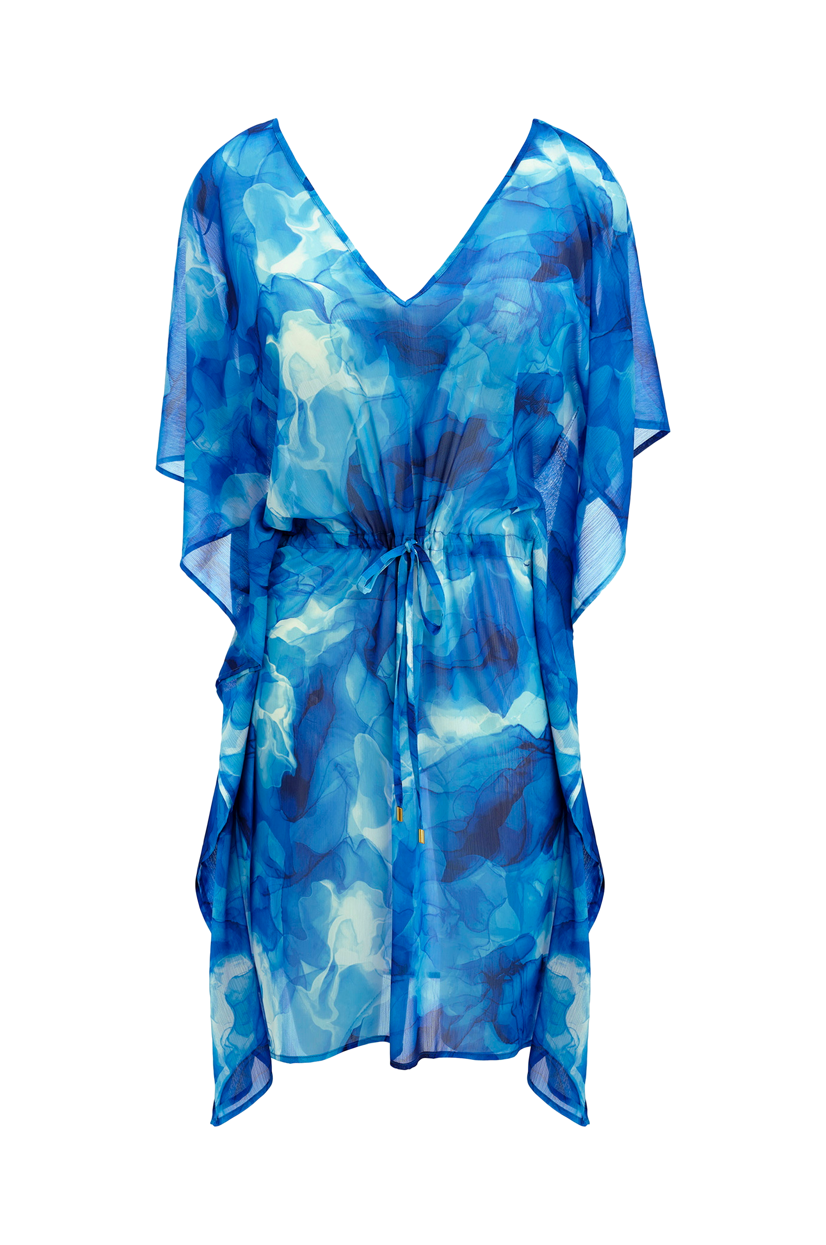 • Semitransparent kaftan med bindbart bånd i nakken• V-udskæring• Elastisk talje med træksnørre• Slids nede i siderne• Afslappet pasform• Længde: 103 cm i størrelse S