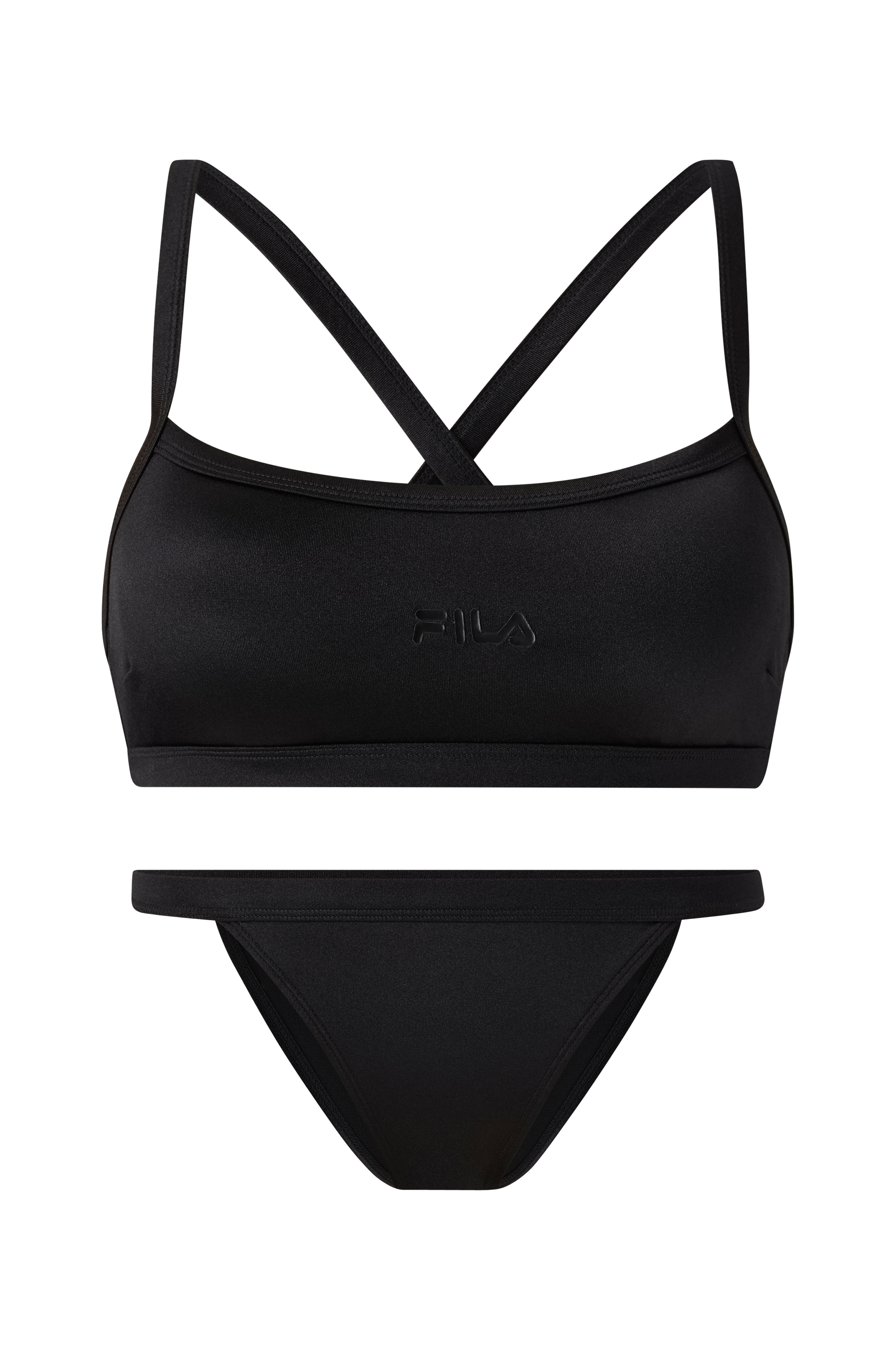 • 2-delt sæt• Skinnende materiale• Bikini-bh med aftagelig polstring og krydsende skulderstropper• Helt foret
