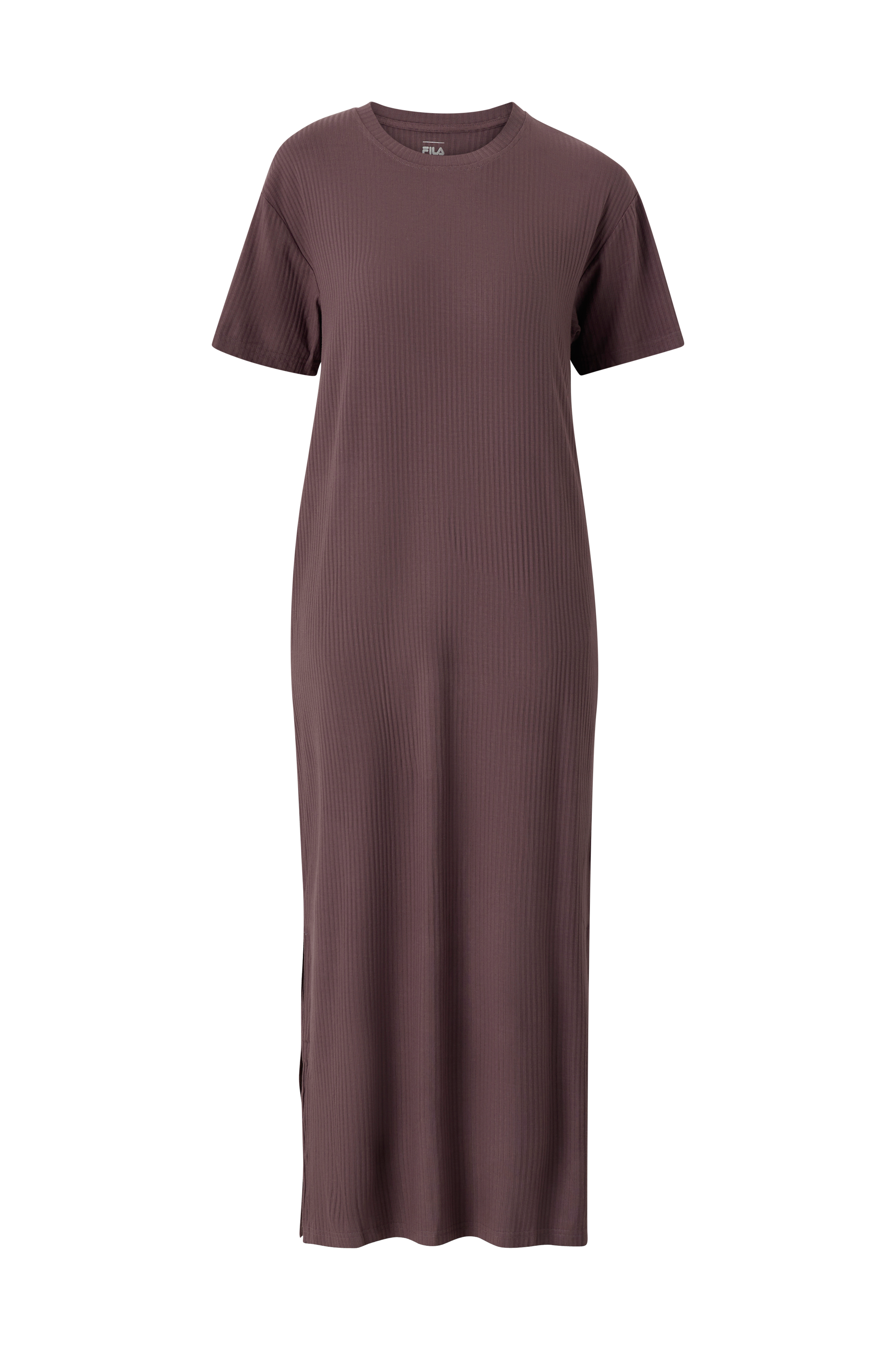 • Lang, ribbet t-shirtkjole i viskosejersey• Korte ærmer• Lommer i siderne• Slidser nederst• Længde: 132 cm i størrelse S
