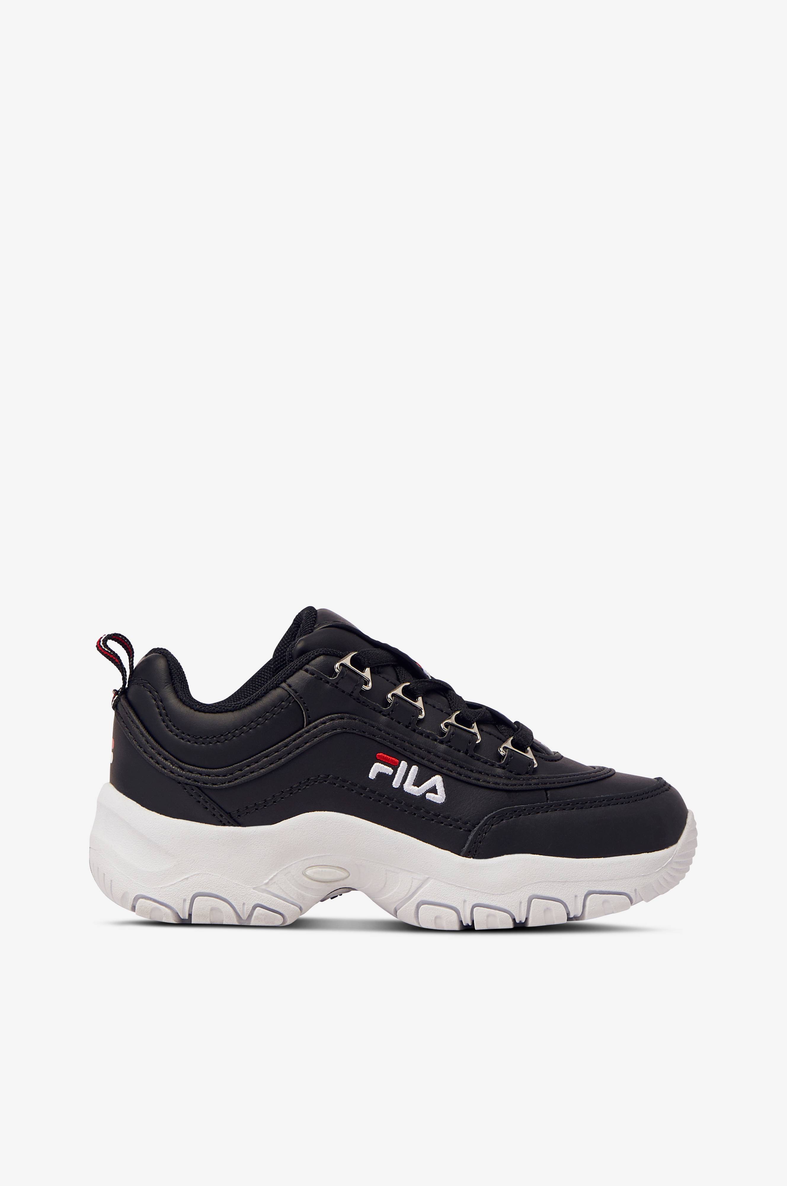 Sneakers Strada Low Kids fra FILA i 90'er-model med overdel i skind. Vatteret åbning og vævet trækstrop bagpå. Udtagelig indersål og kraftig ydersål.