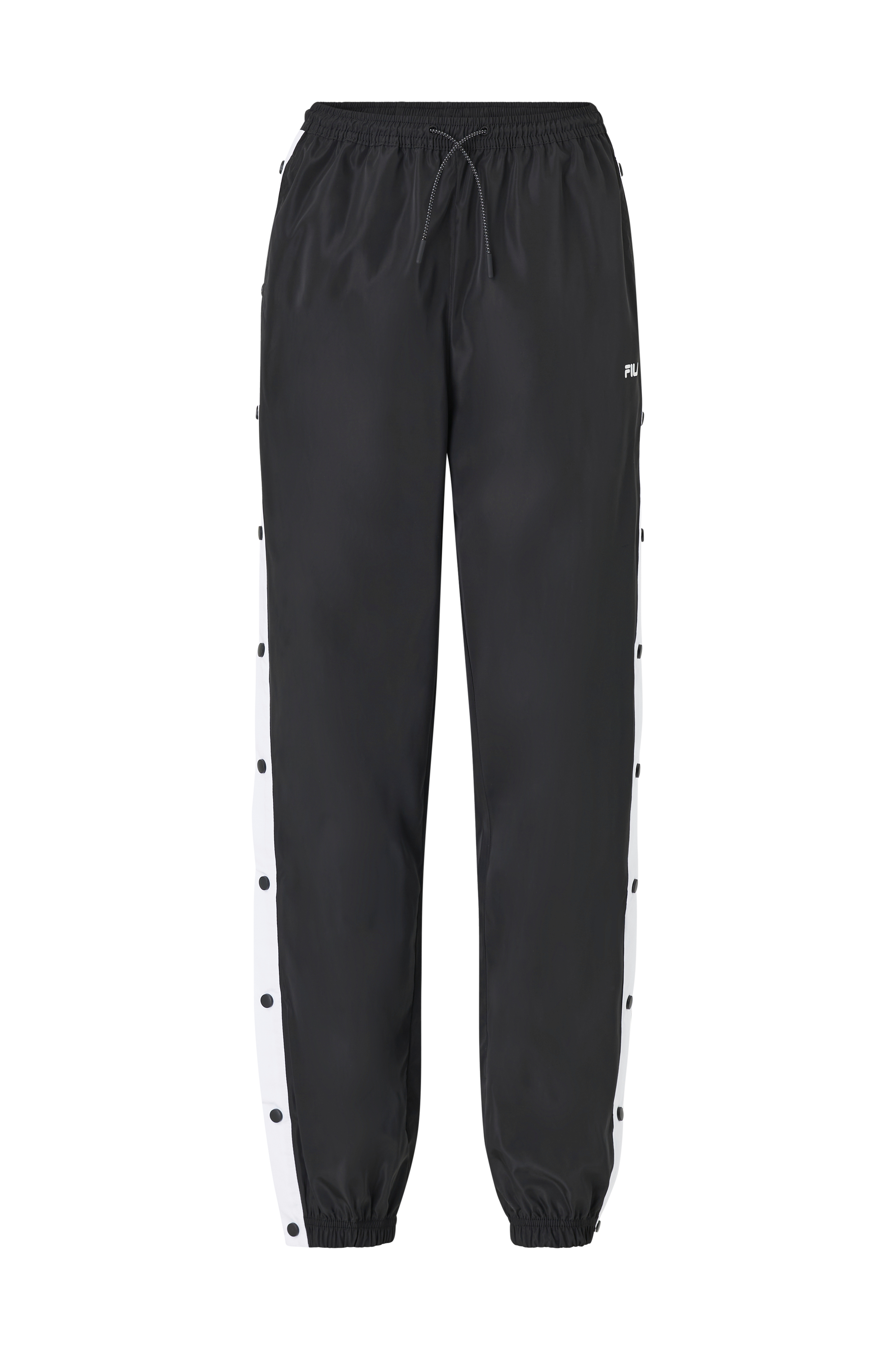 • Vævet, skinnende materiale• Høj, elastisk talje med træksnørre• Sidelommer• Sider som kan åbnes med trykknapper• Elastisk bånd ved enden af benene