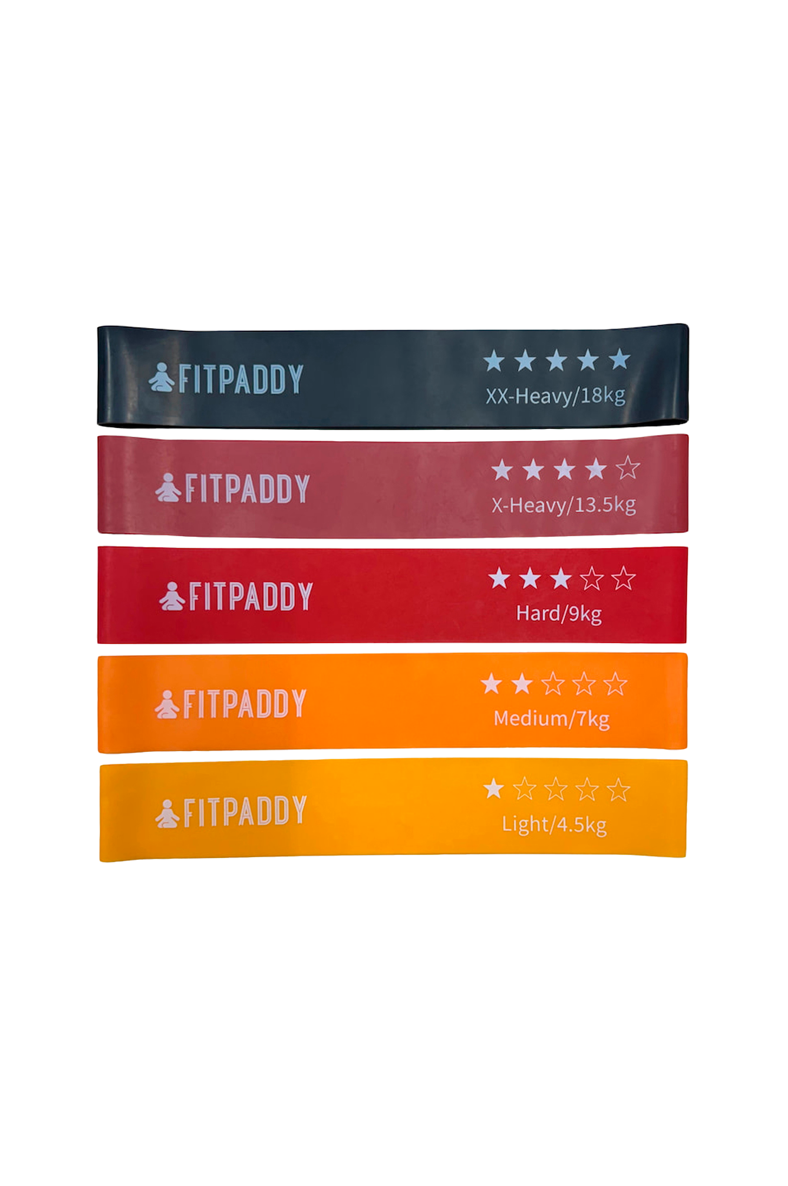 Varje paket innehåller fem band, var och ett med unika viktklasser och motstånd, vilket gör dem lämpliga för olika slags övningar för folk på alla konditionsnivåer.