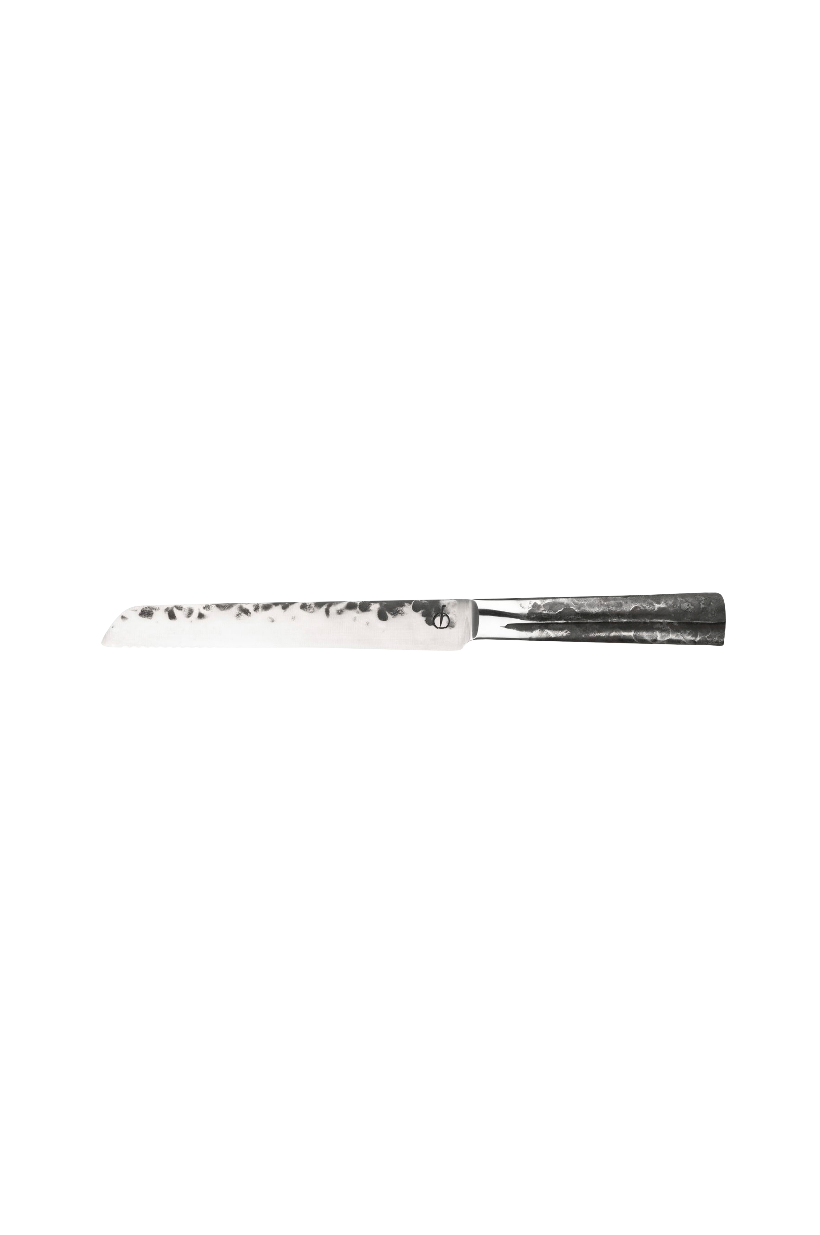 Forged intense bread knife har et langt og savtakket blad, som er ideelt til at skære bread. Også perfekt til at skære større grøntsager eller frugter som melon, græskar eller ananas. forged intense knivene er fremstillet af japansk 440c-stål med en hårdhed på 58 rockwell. Alle forged knive er forged i hånden, har en bladtykkelse på 2 mm og en 18 graders skærevinkel. Leveres i en luksuriøs æske. Vi giver 10 års garanti.
