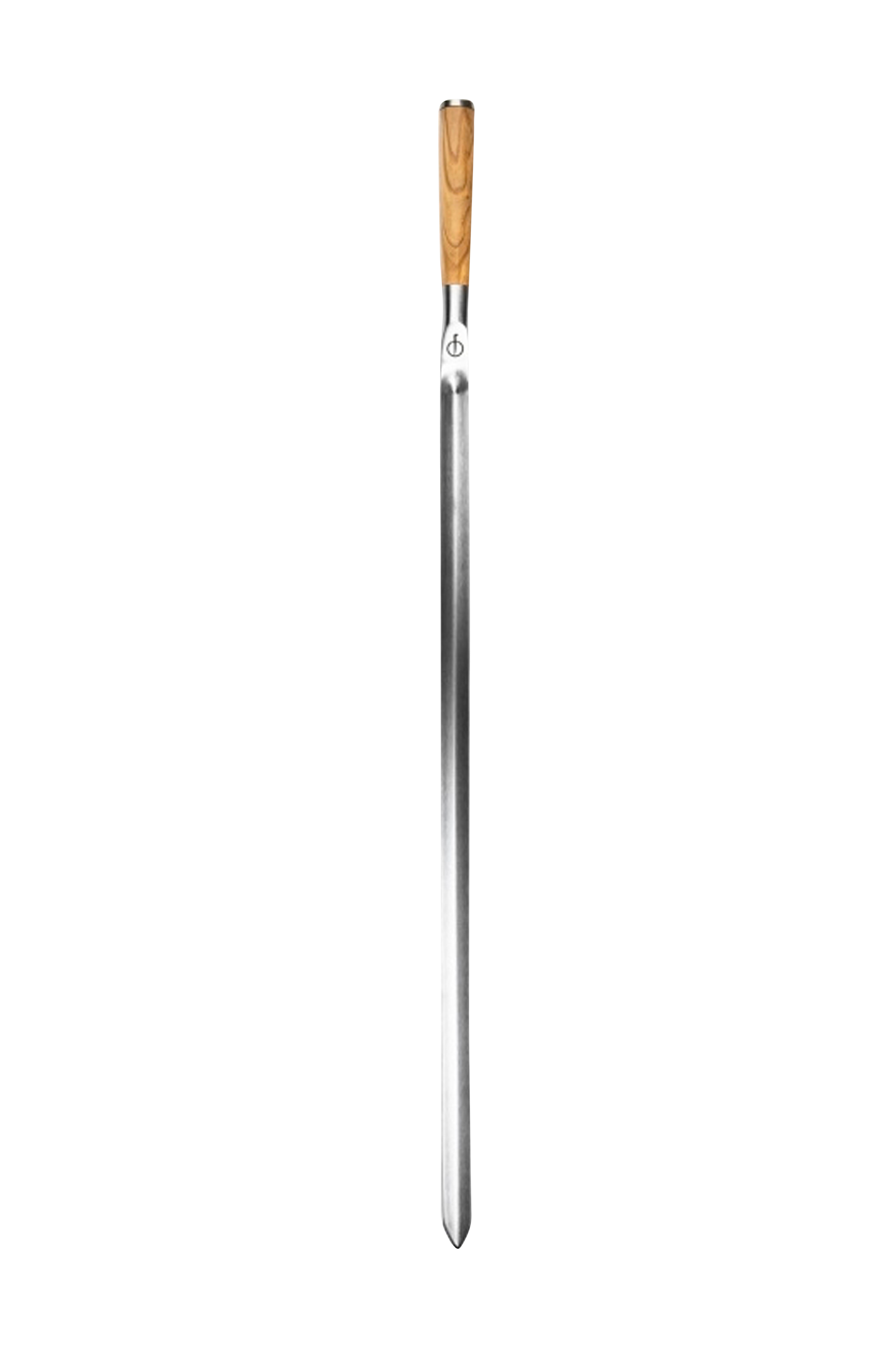 V-formet spyd 50 cm, er lavet af højkvalitetsstål i kombination med oliventræ. Håndtaget har en rund til oval form og er lavet af oliventræ. Det gør det meget behageligt at holde på. Takket være de skarpe spidser kan du nemt sætte et hvilket som helst stykke kød, grøntsag eller frugt på spyddet, og spyddets V-form sikrer, at det sidder godt fast under grillning og servering.