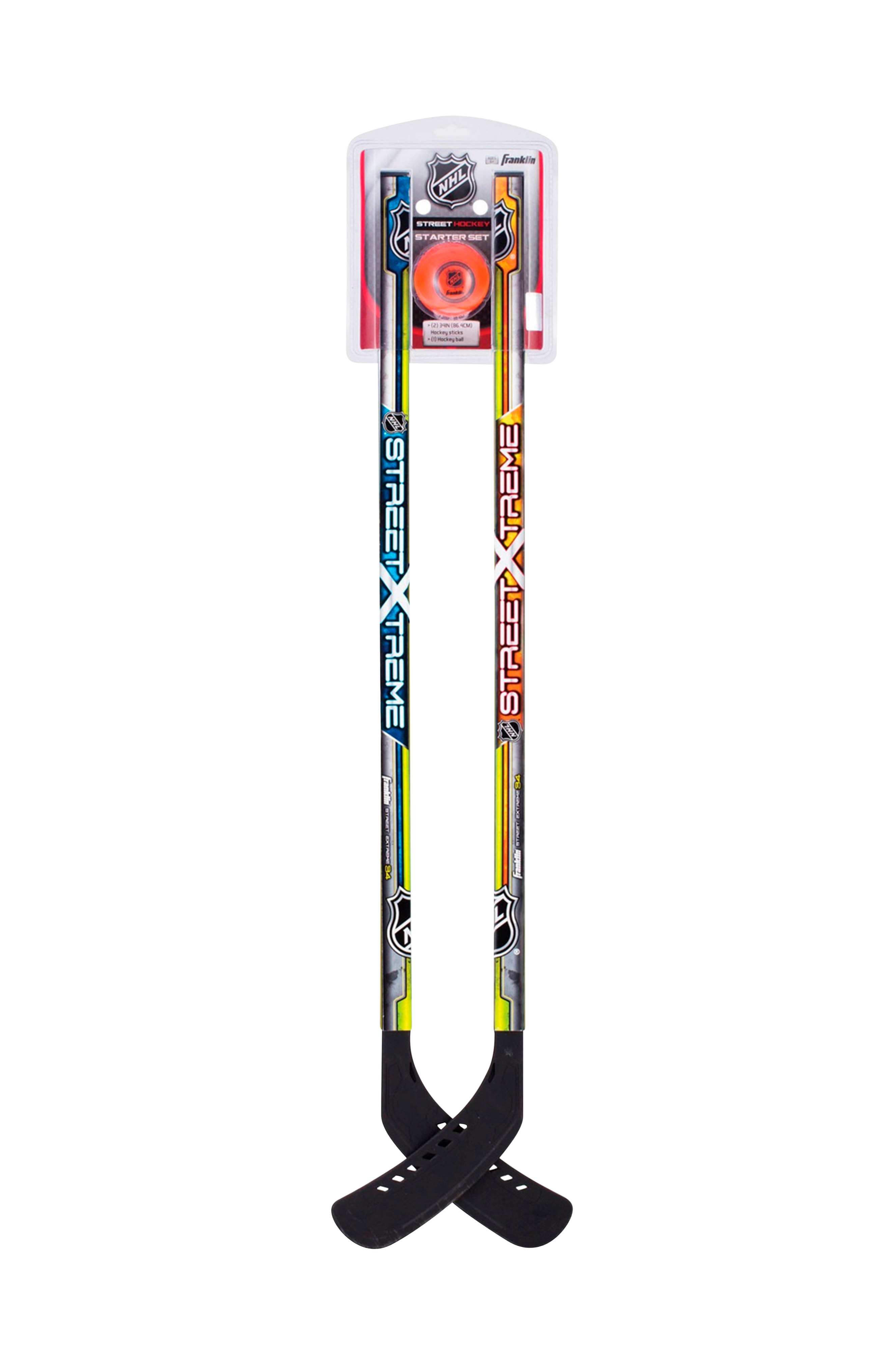 Nybegyndersæt med 2 stave og en bold i plast. Ikke beregnet til spil med almindelig puck.