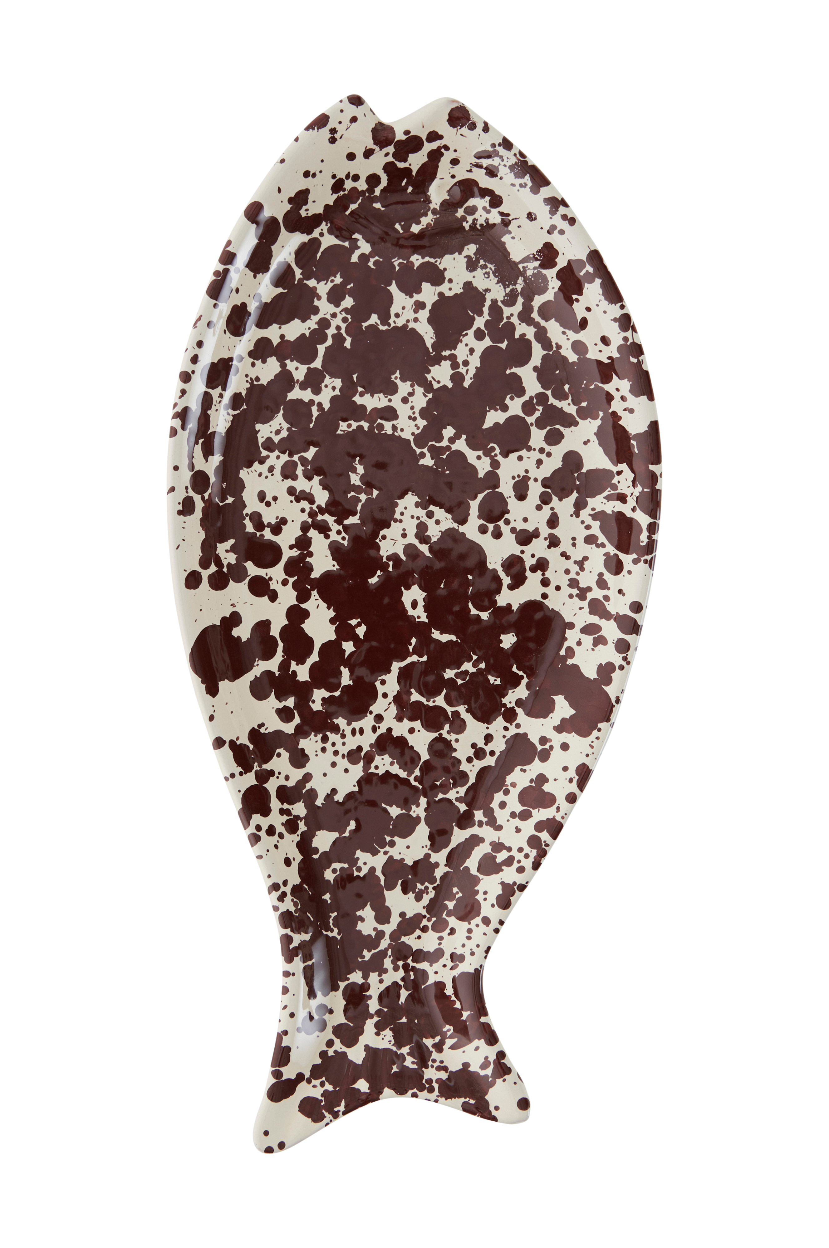 Tallerken Spruzzi i robust, italiensk keramik som er stænkmalet i hånden.Længde 33 cm.