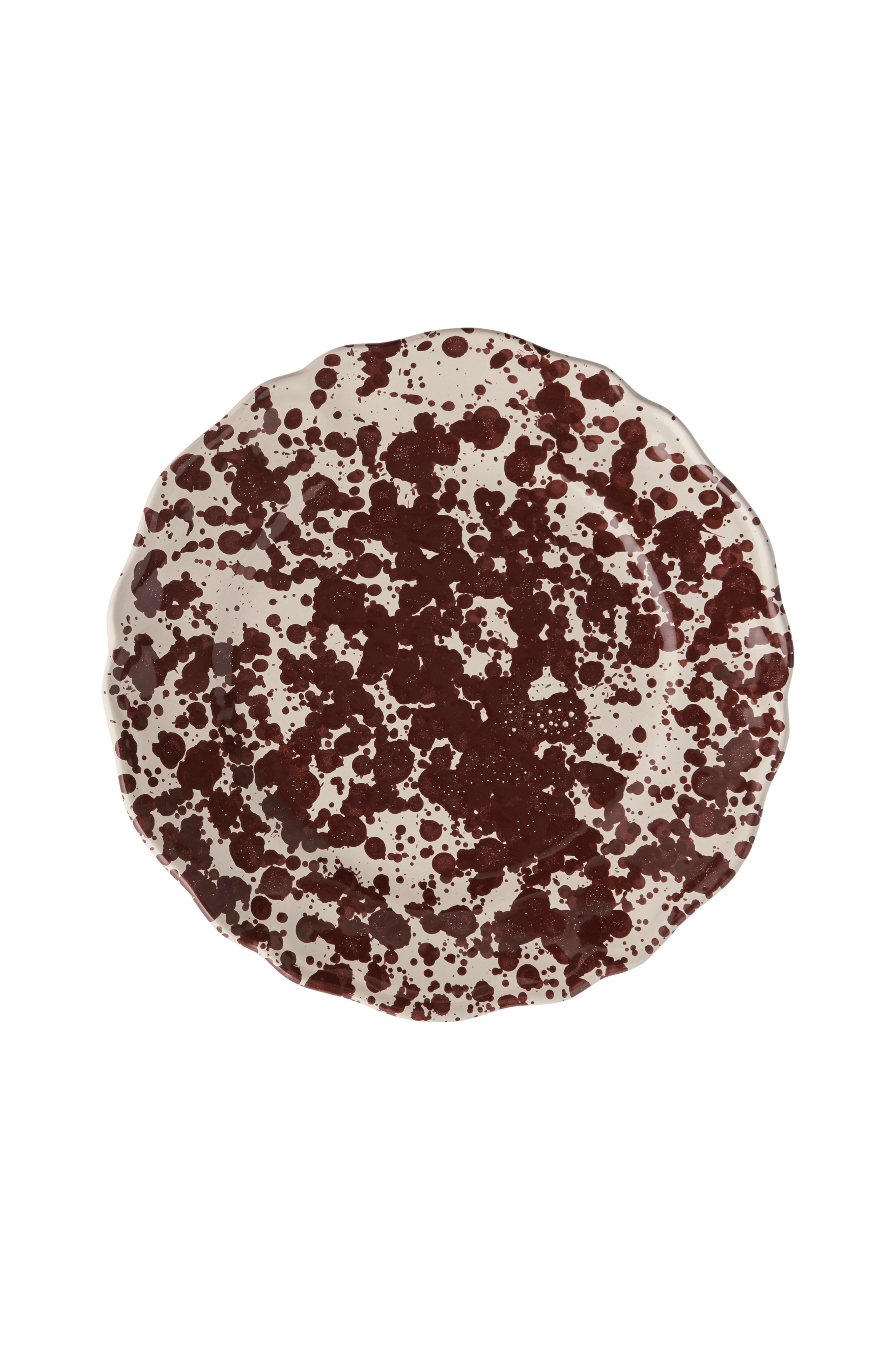 Tallerken Spruzzi i robust, italiensk keramik som er stænkmalet i hånden.Diameter 20 cm.