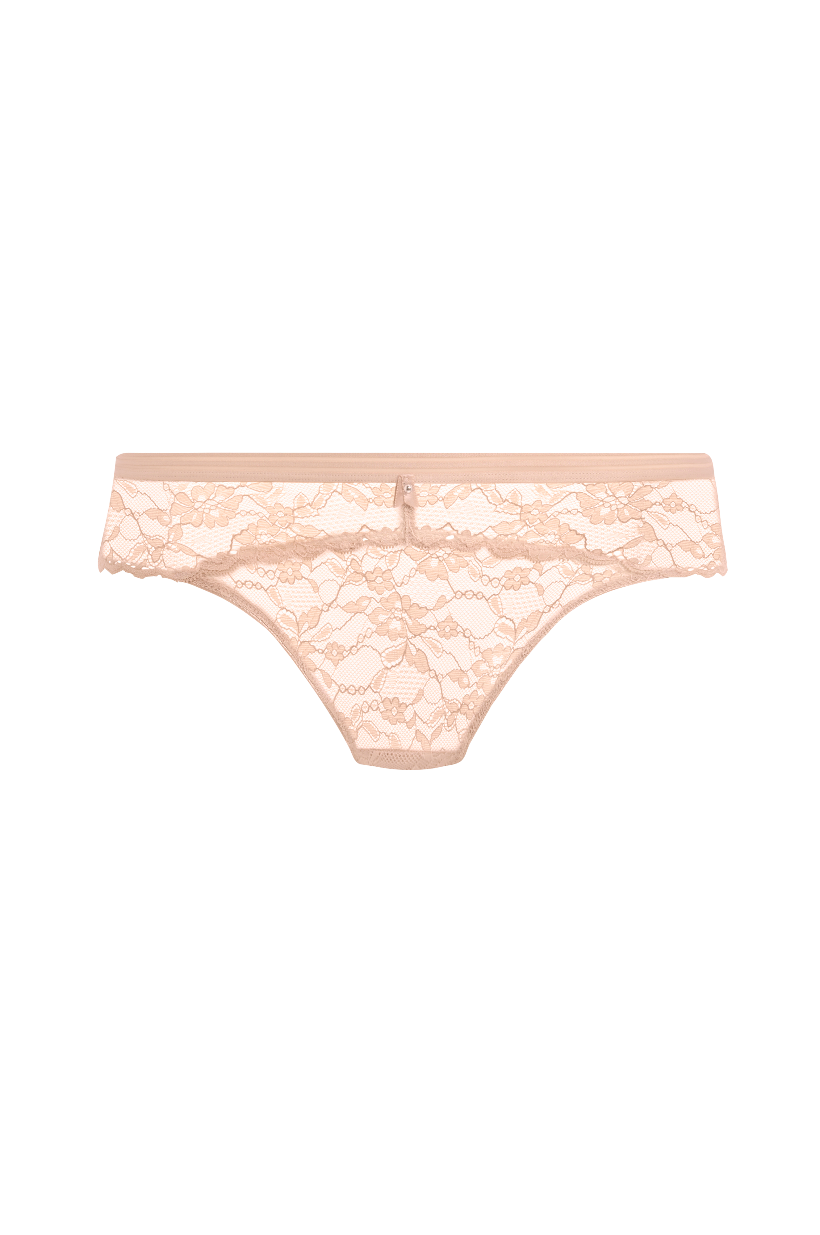 Blondetrusse med høj benudskæring. Small elastik i taljen. Foret skridt.